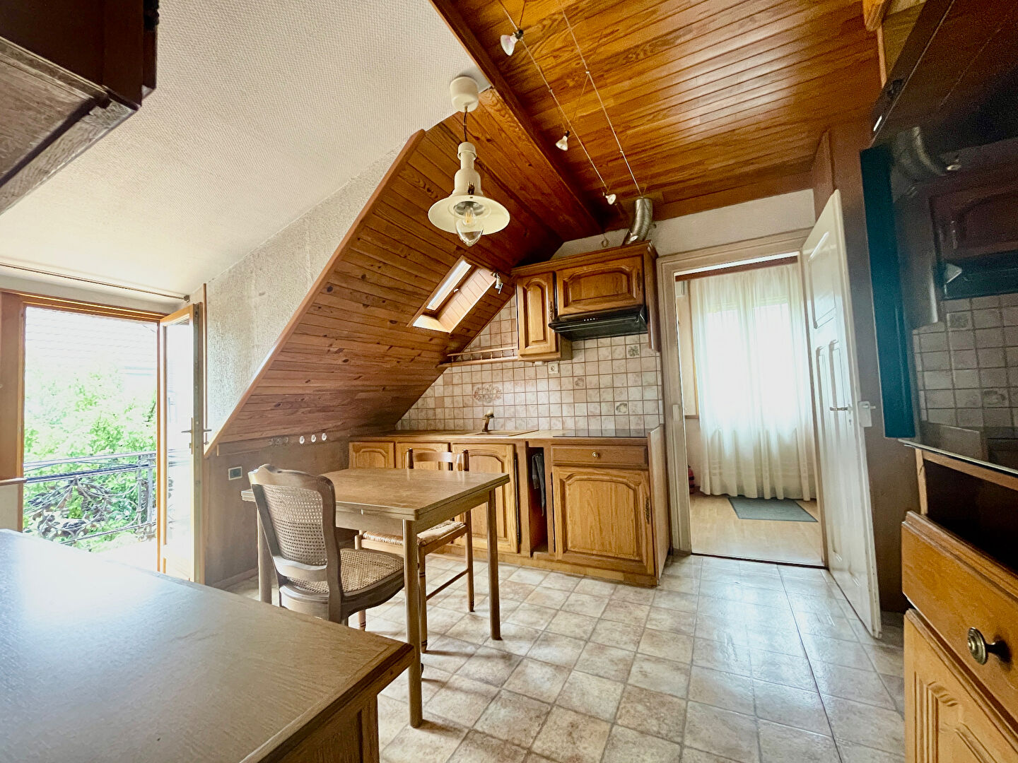 L'étage est composé de 3 belles chambres, d'une deuxième cuisine équipée donnant accès à un balcon, d'un WC avec aménagement pour se doucher.