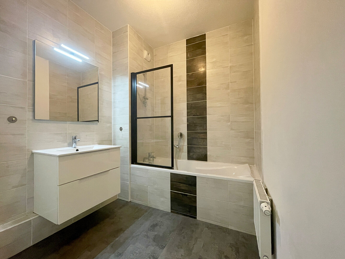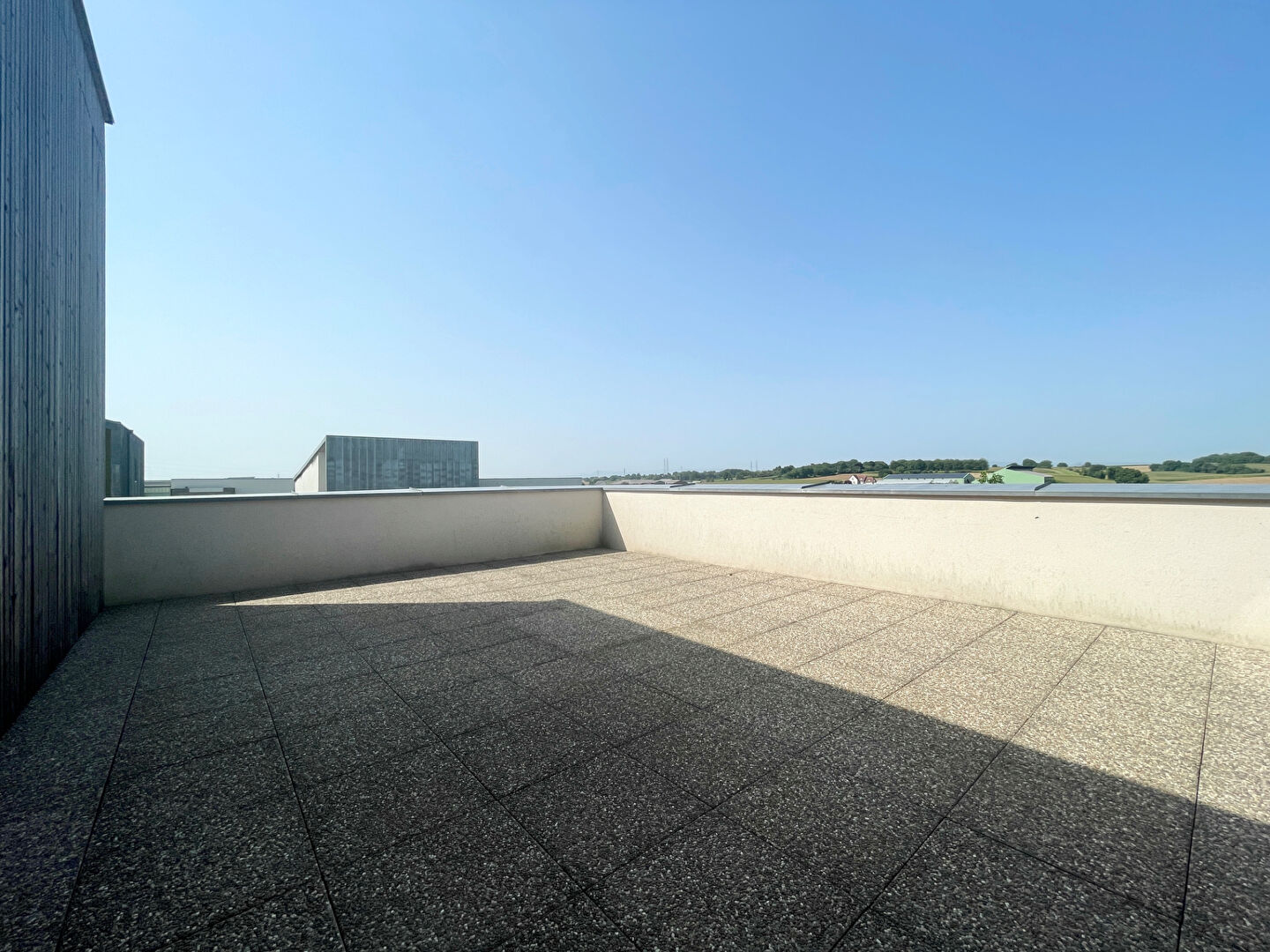 Il se compose d'une entrée avec rangements, d'un vaste séjour avec cuisine ouverte équipée (plaque, hotte, four), d'une splendide terrasse de 38 m² exposée sud-ouest, de trois chambres, dont une avec grand placard intégré, d'une salle de bains moderne et d'un WC séparé.