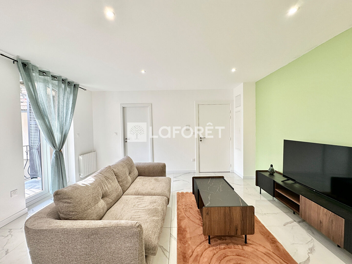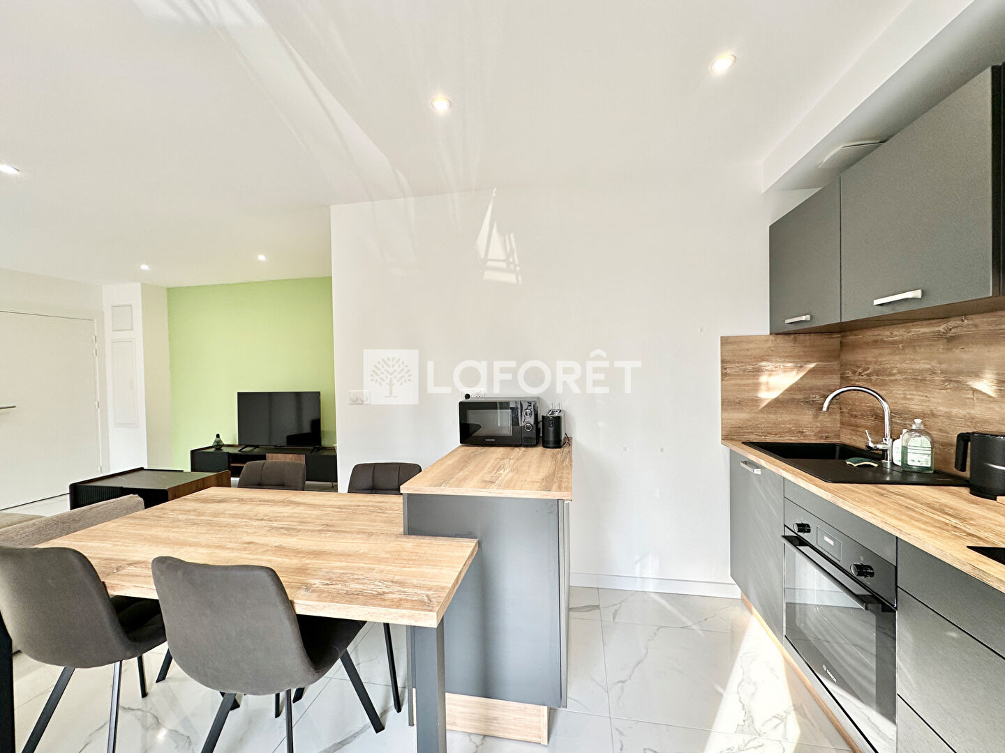 L'appartement se compose d'une pièce de vie principale avec un espace salon ainsi qu'une cuisine meublée et équipée, d'une chambre avec une grande armoire de rangement, d'une salle d'eau avec douche et WC, le tout donnant accès à une belle terrasse de 8 m2.