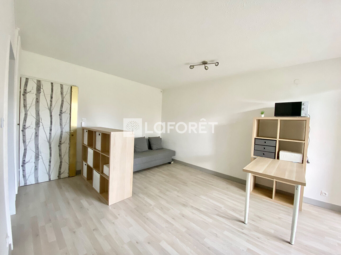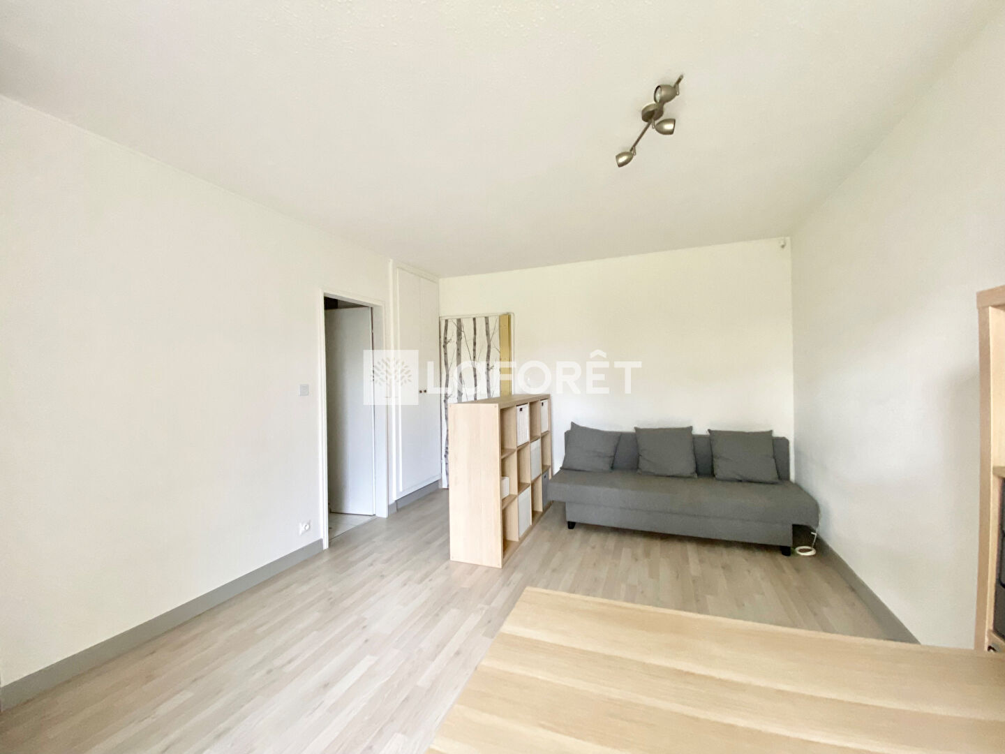 L'appartement se compose d'une pièce de vie principale salon/séjour, d'un espace kitchenette équipée (plaque de cuisson, réfrigérateur top, micro-ondes), ainsi que d'une salle d'eau spacieuse avec douche et WC.