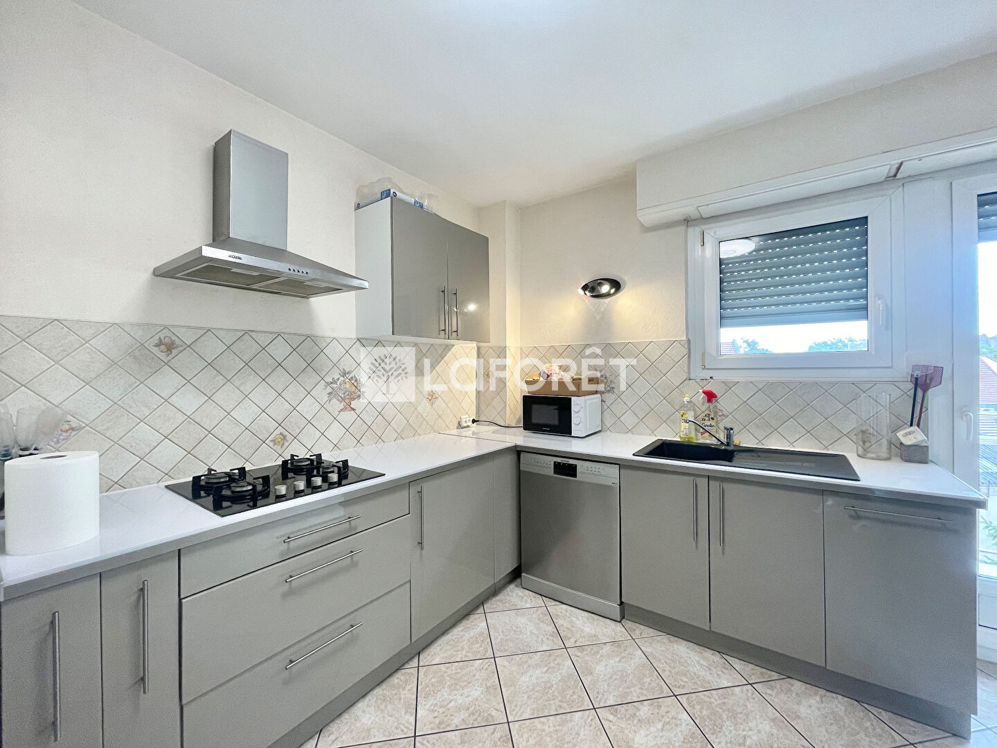 Dans une petite rue calme derrière la Route des Romains, au troisième étage d'une copropriété avec ascenseur, grand appartement 3 pièces d'une surface d'environ 95 m2 avec deux balcons.