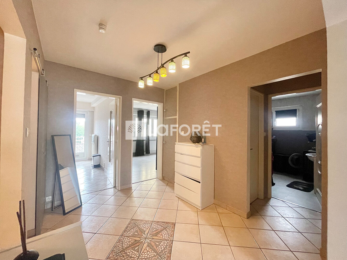 L'appartement se compose d'une entrée avec des placards de rangement, d'un dégagement avec un petit espace fermé pouvant servir de bureau ou d'espace de rangements, d'une cuisine meublée et équipée avec accès à un balcon, d'une grande pièce de vie lumineuse avec accès à un second balcon, de deux chambres, d'une salle de bains avec douche et baignoire, ainsi qu'un WC séparé.