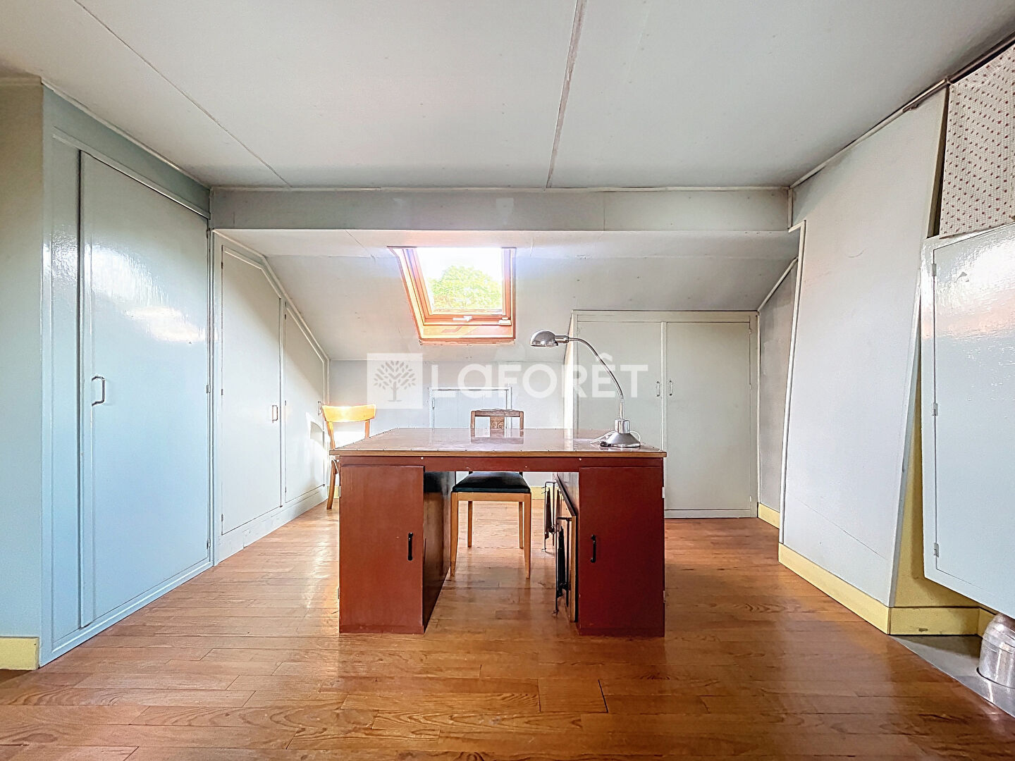 À l'étage : deux grandes chambres avec rangements, desservies par un palier.