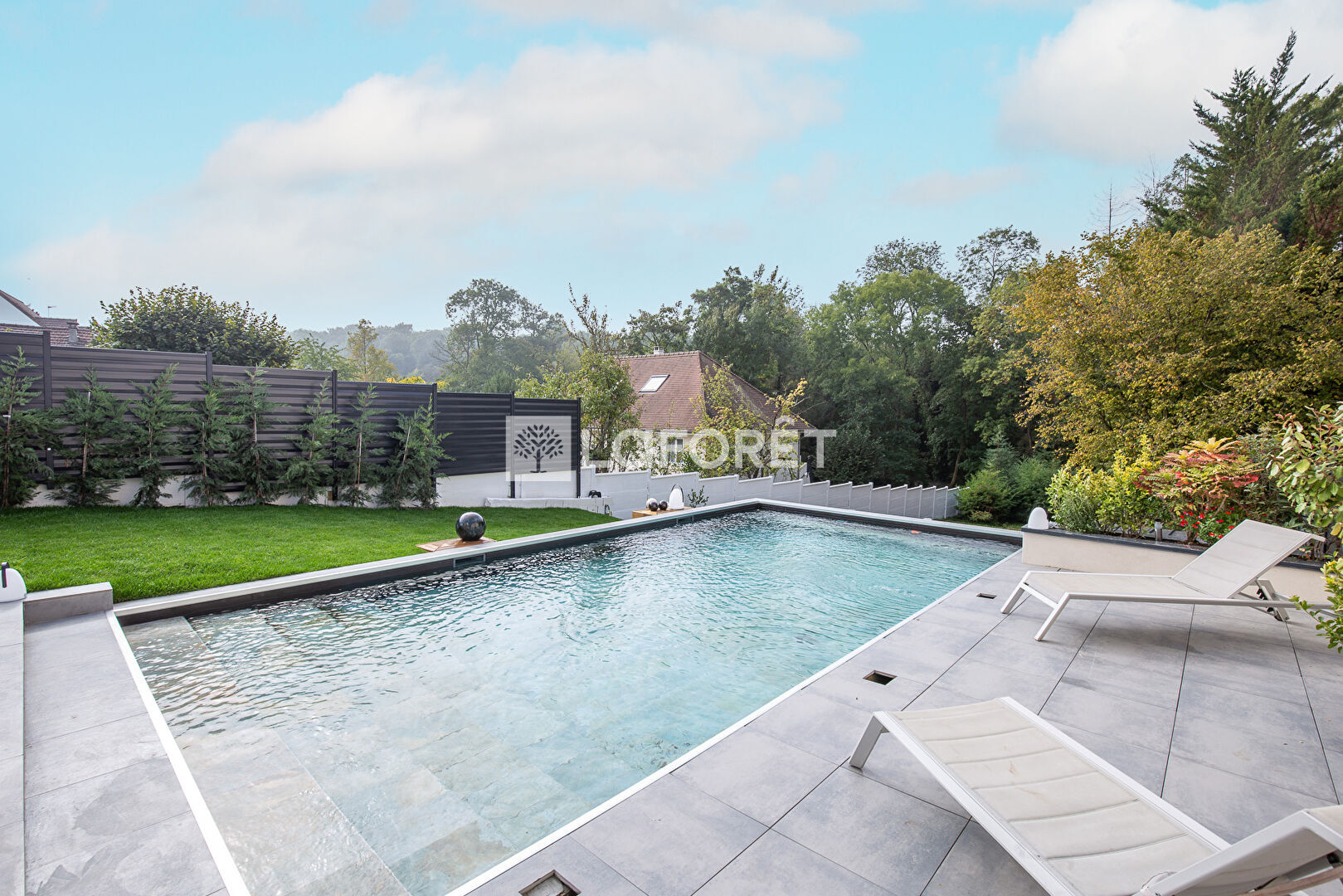 Cette maison de 250 m² est édifiée sur un terrain de 1232m² exposé OUEST avec vue sur la forêt.