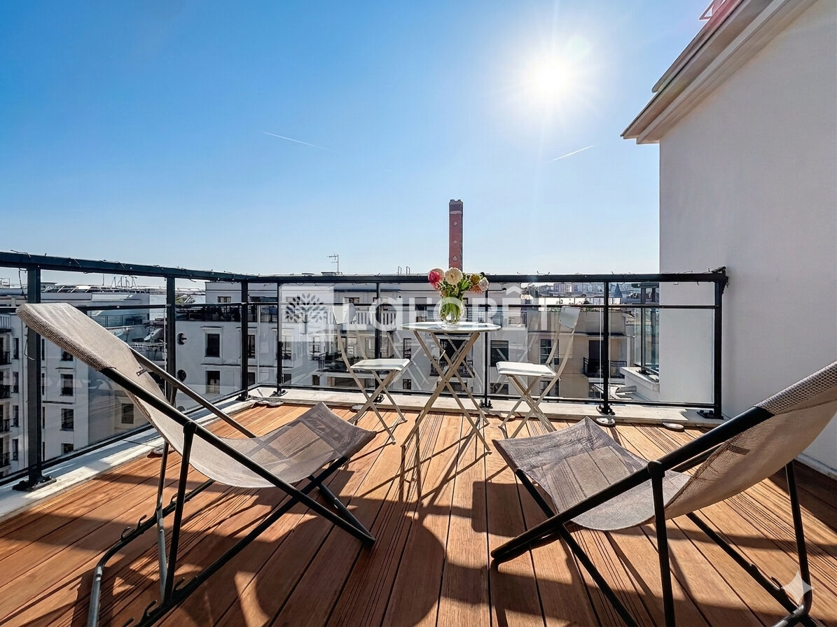 Terrasse de plain-pied, exposée plein Sud et sans aucun vis-à-vis.