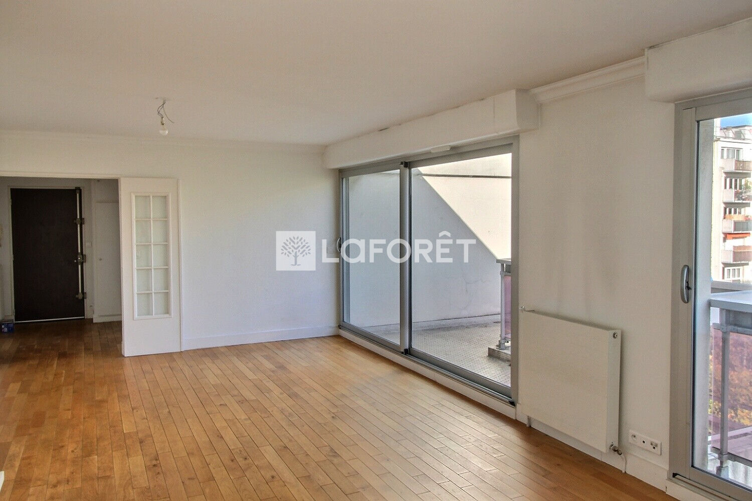 Appartement 5 pièces situé au 4ème et dernier étage comprenant une entrée avec placard, une salle d'eau avec wc, une cuisine aménagée/équipée, un double séjour donnant sur un balcon, un dégagement avec placards desservant 3 chambres et une salle de bains avec wc.
