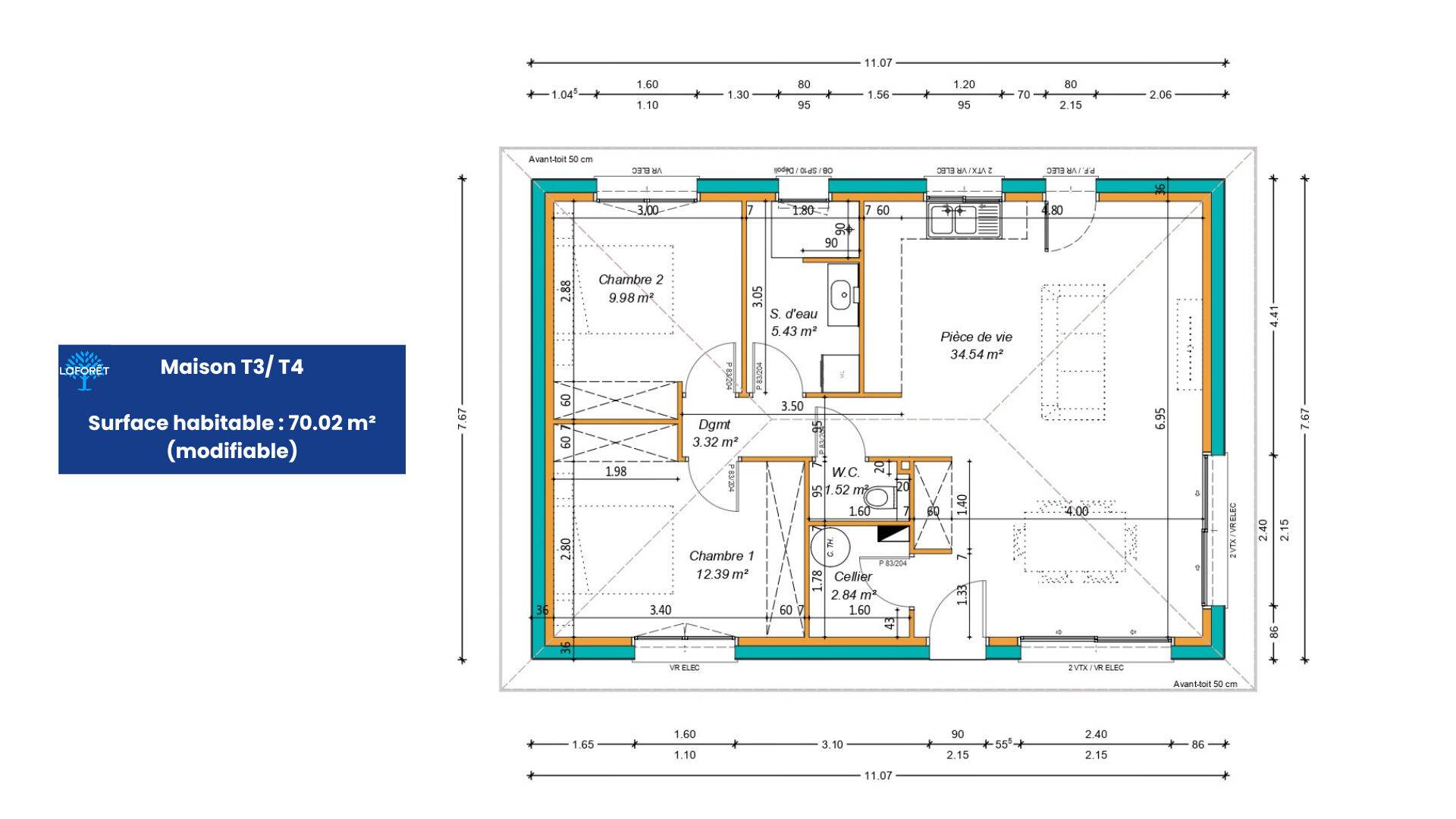 projet de terrain à bâtir + construction neuve, la surface habitable est modifiable selon vos envies.