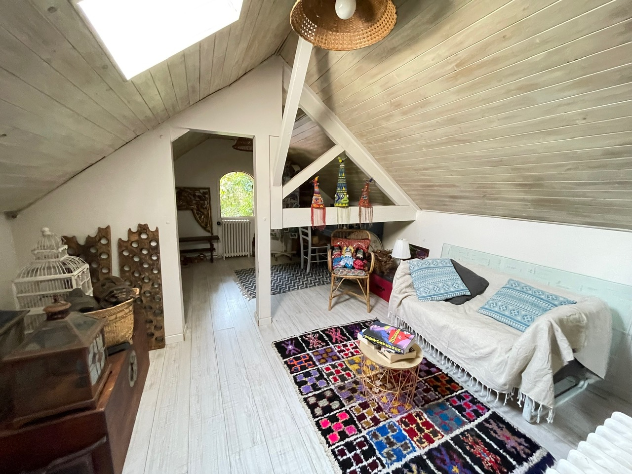Vous y découvrirez un salon/séjour lumineux avec cheminée, parfait pour les moments de détente en famille ou entre amis. La cuisine indépendante offre un bel espace pour cuisiner confortablement au quotidien.