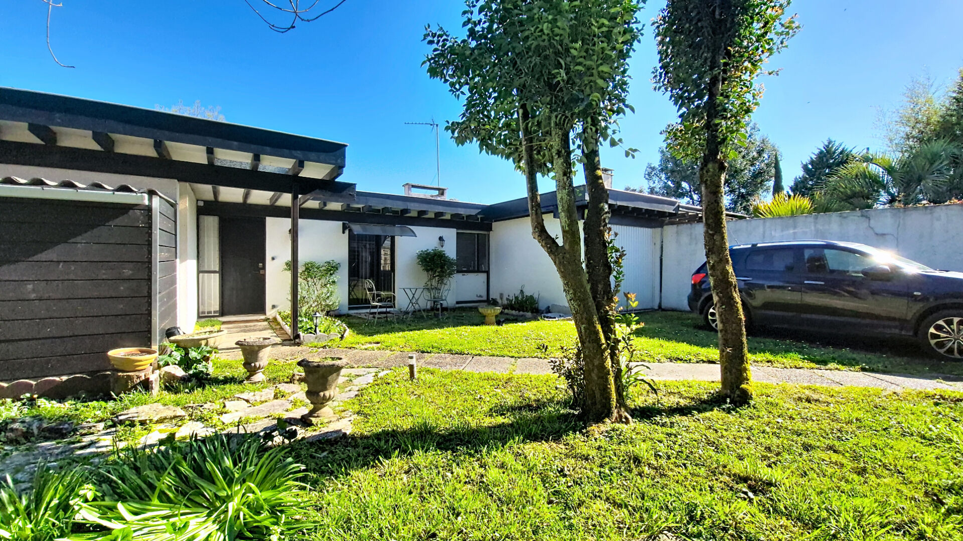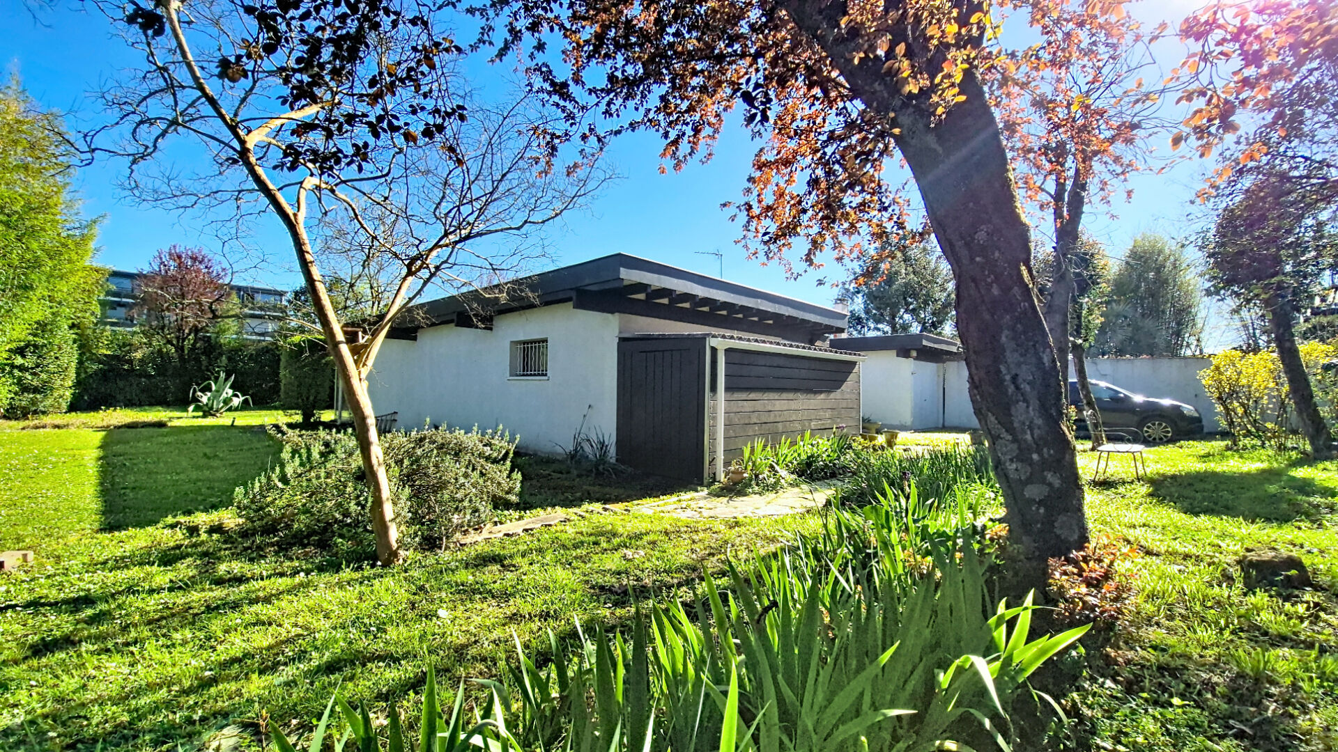 Bénéficiez d'un portail permettant de stationner vos véhicules ou 2 roues à l' intérieur de la parcelle. Jardin arborée et intime sur 3 cotés.