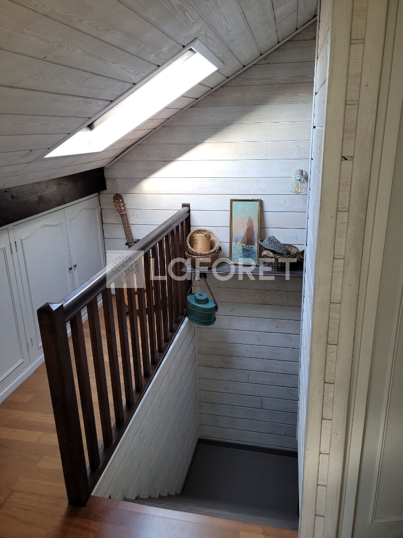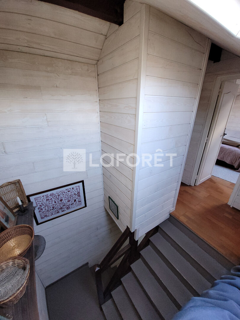 Au deuxième et dernier étage, des combles aménagés en second espace nuit avec de nombreux rangements en soupente. Vous y trouverez une grande chambre avec sa salle de bain et son WC.