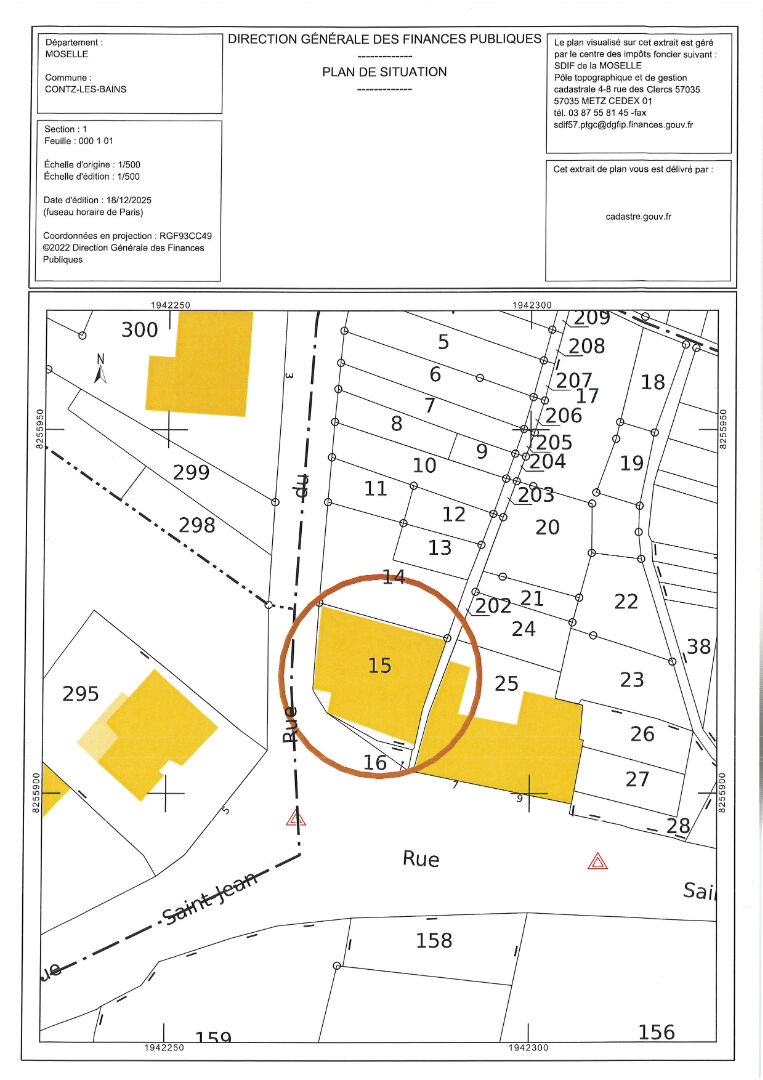 CONTZ LES BAINS : En exclusivité, à l'angle de la rue St Jean et de la rue du Stade, sur un terrain constructible en zone Ua de 2a49ca avec une belle façade d'environ 14 mètres. L'agence Laforêt vous propose un entrepôt de stockage.