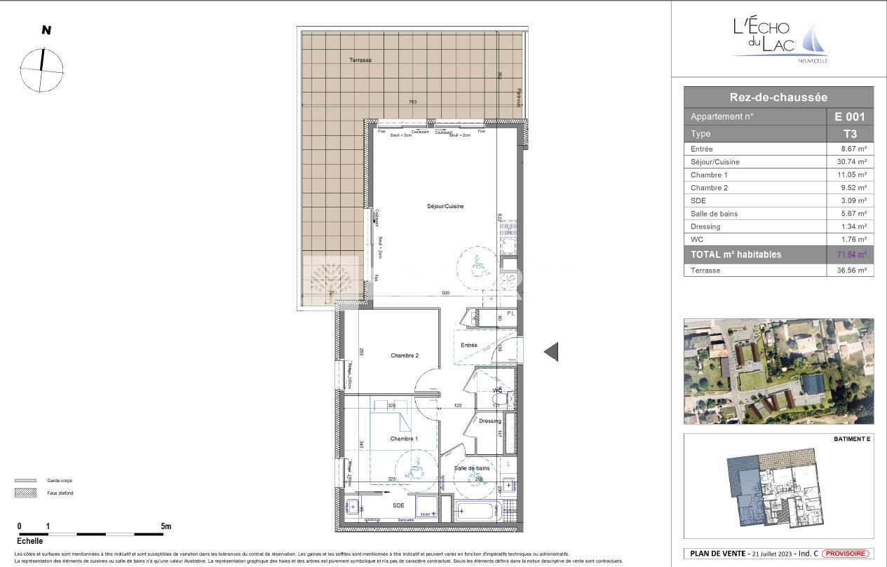 Appartement Type 3 de 71,84m² avec Terrasse de 36m² situé au Rez-de-Chaussée.