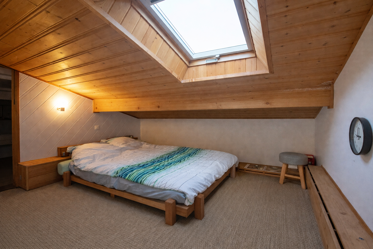La chambre principale, nichée sous les toits, constitue un véritable cocon.