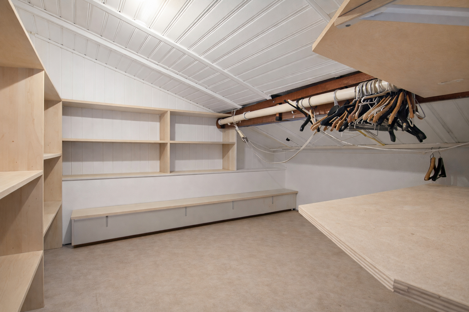 Des espaces optimisés sous pente offrent des solutions de rangement appréciables.