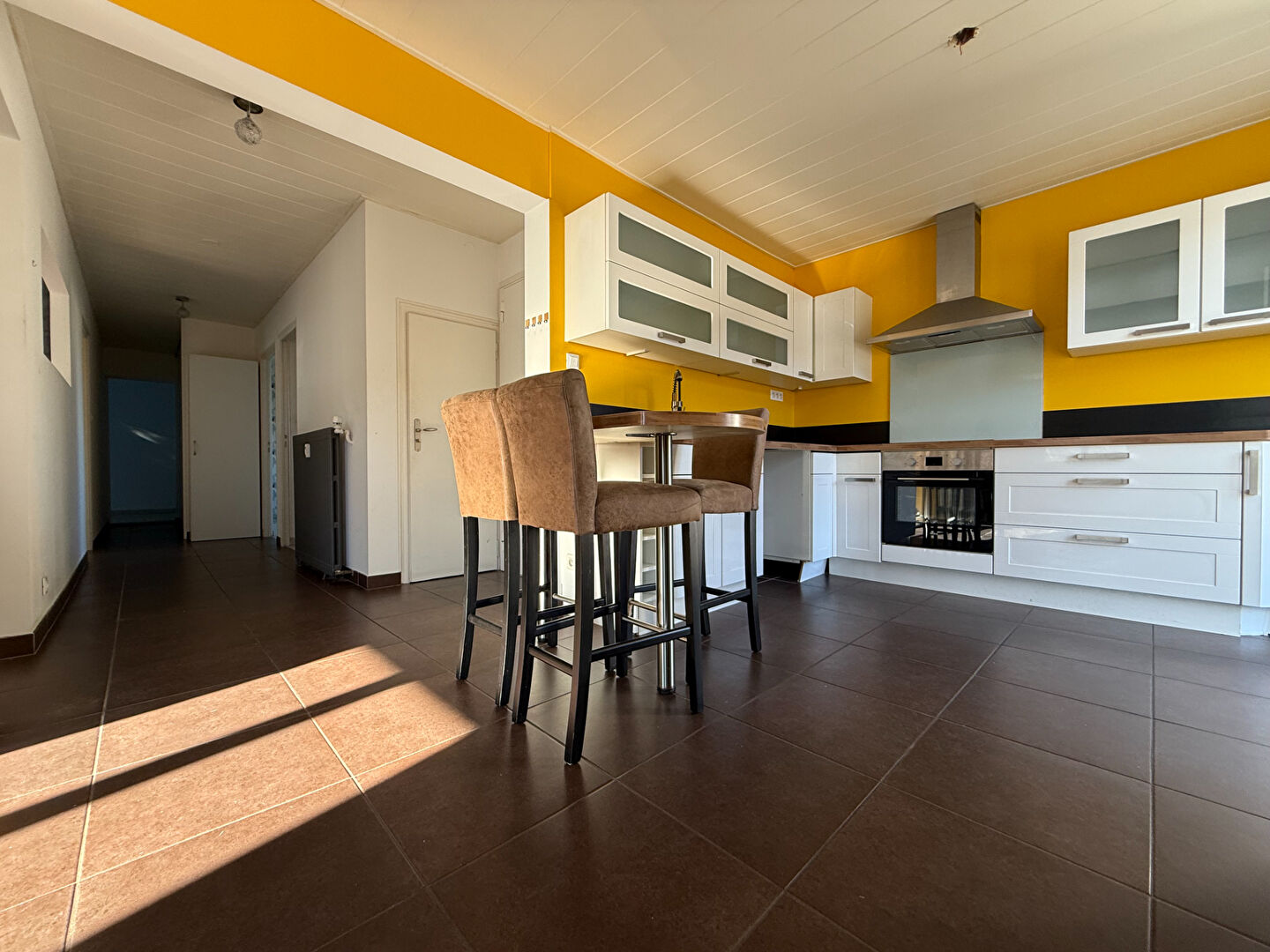 Situé au 1er étage d'une petite résidence, ce grand appartement T4 bénéficie d'une exposition plein Sud, offrant une belle luminosité tout au long de la journée.