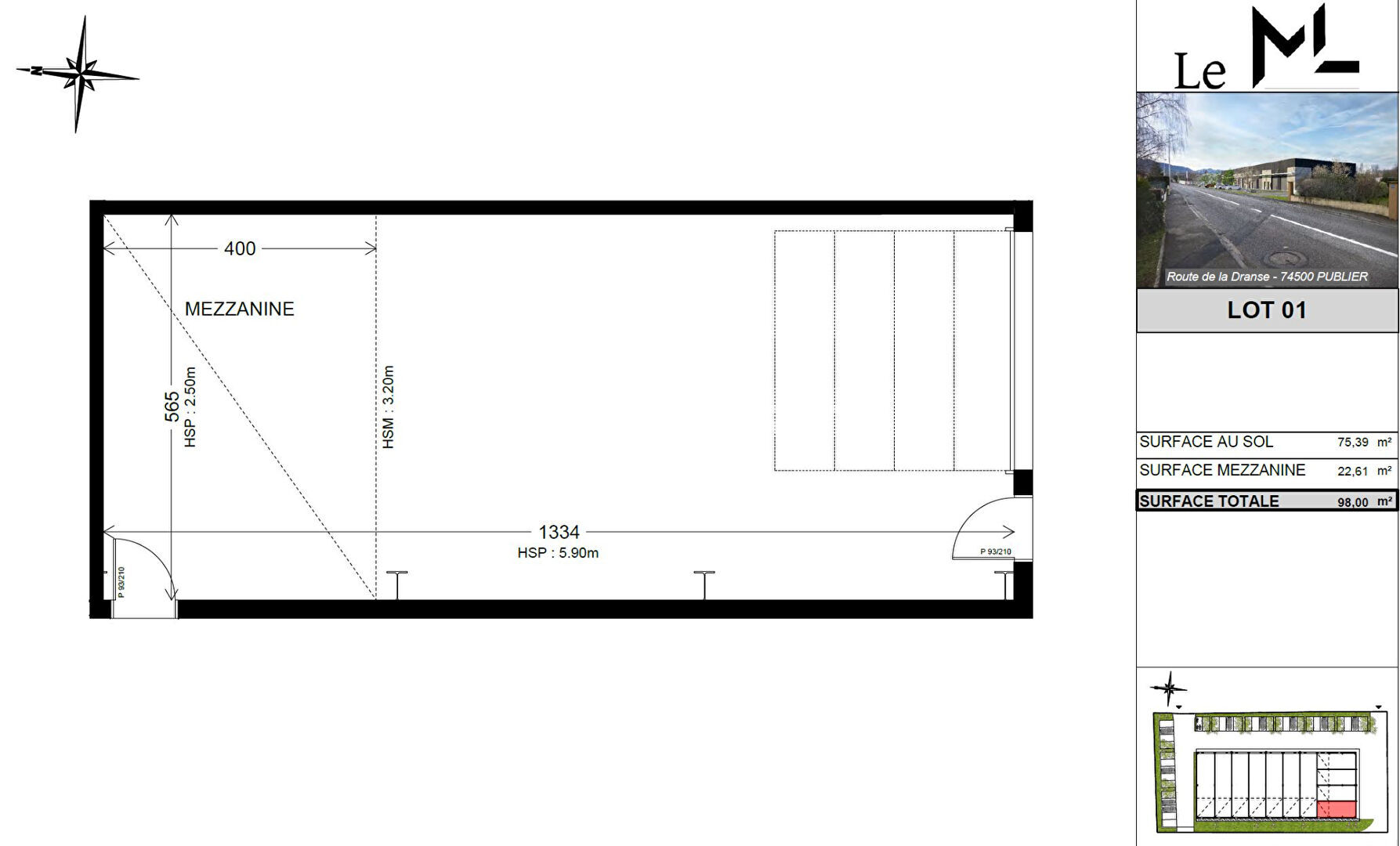 LOT n°1: Entrepôt d'une surface de 82 m² + Mezzanine 23m² (soit 105 m² au total).