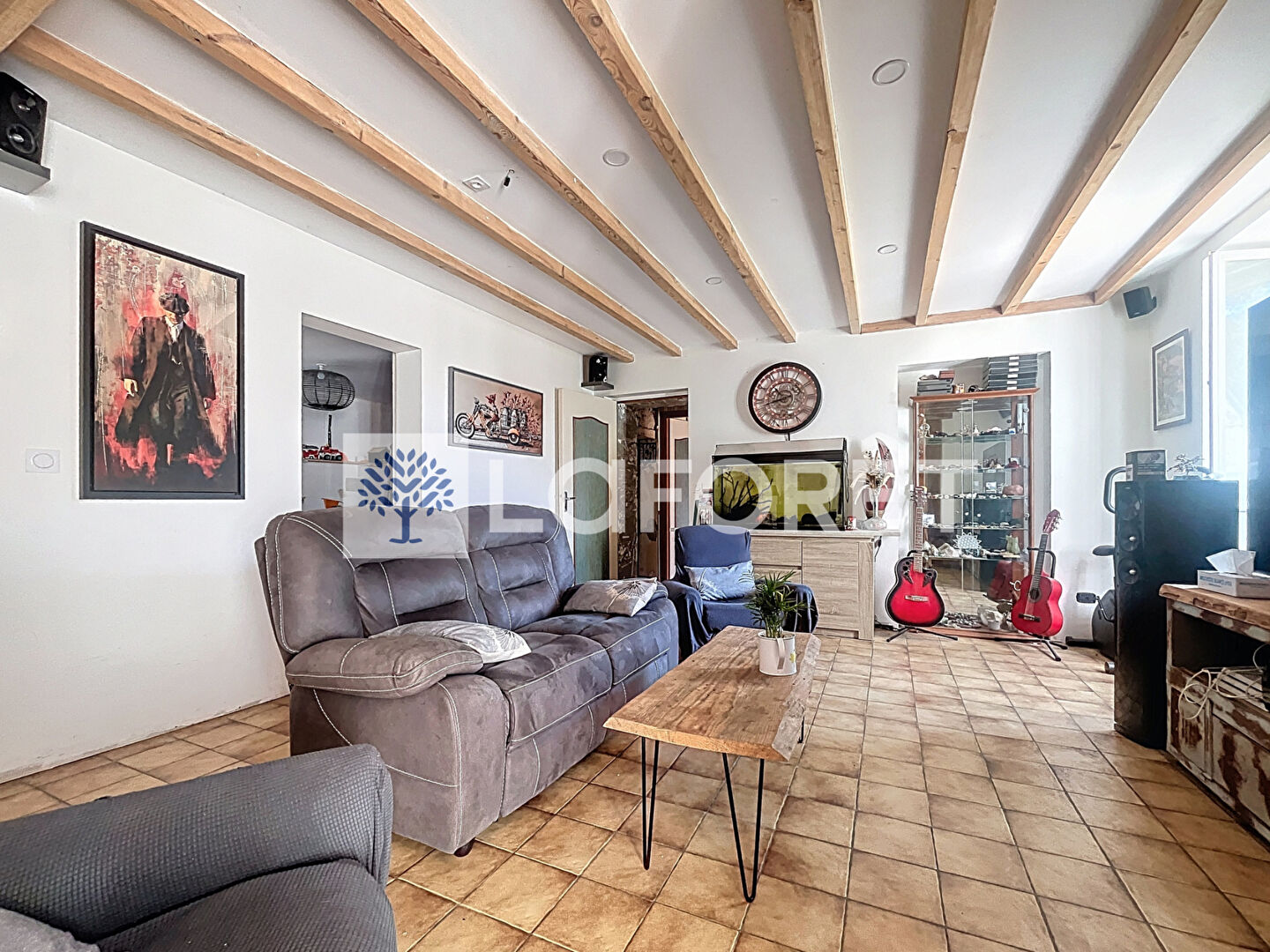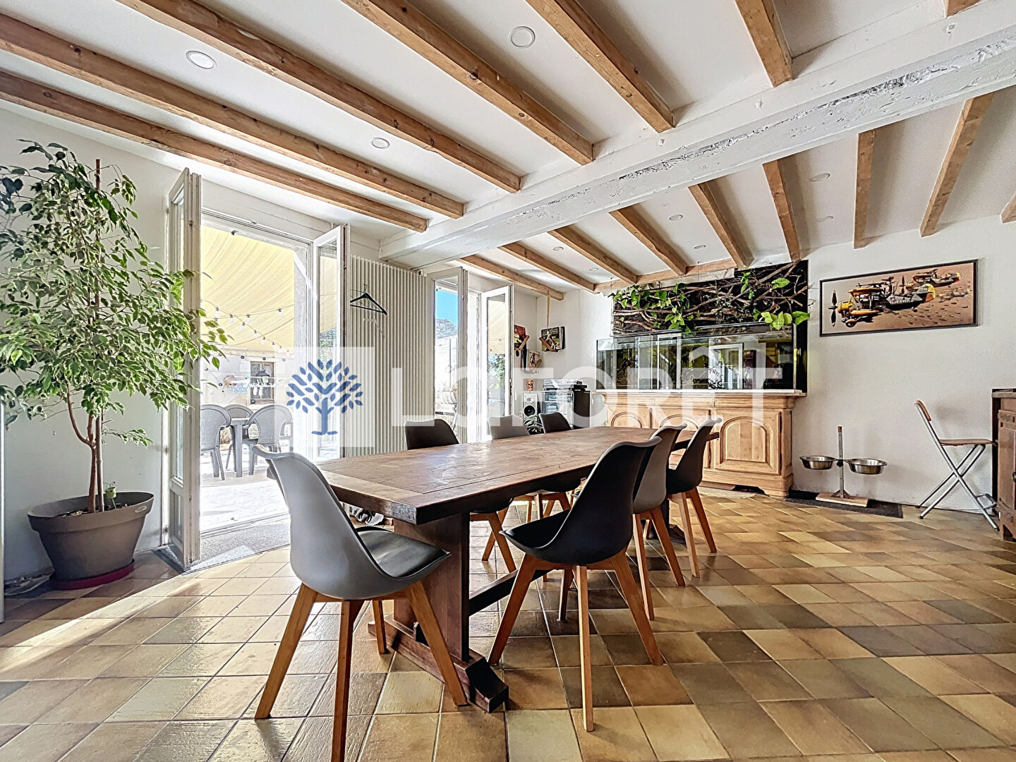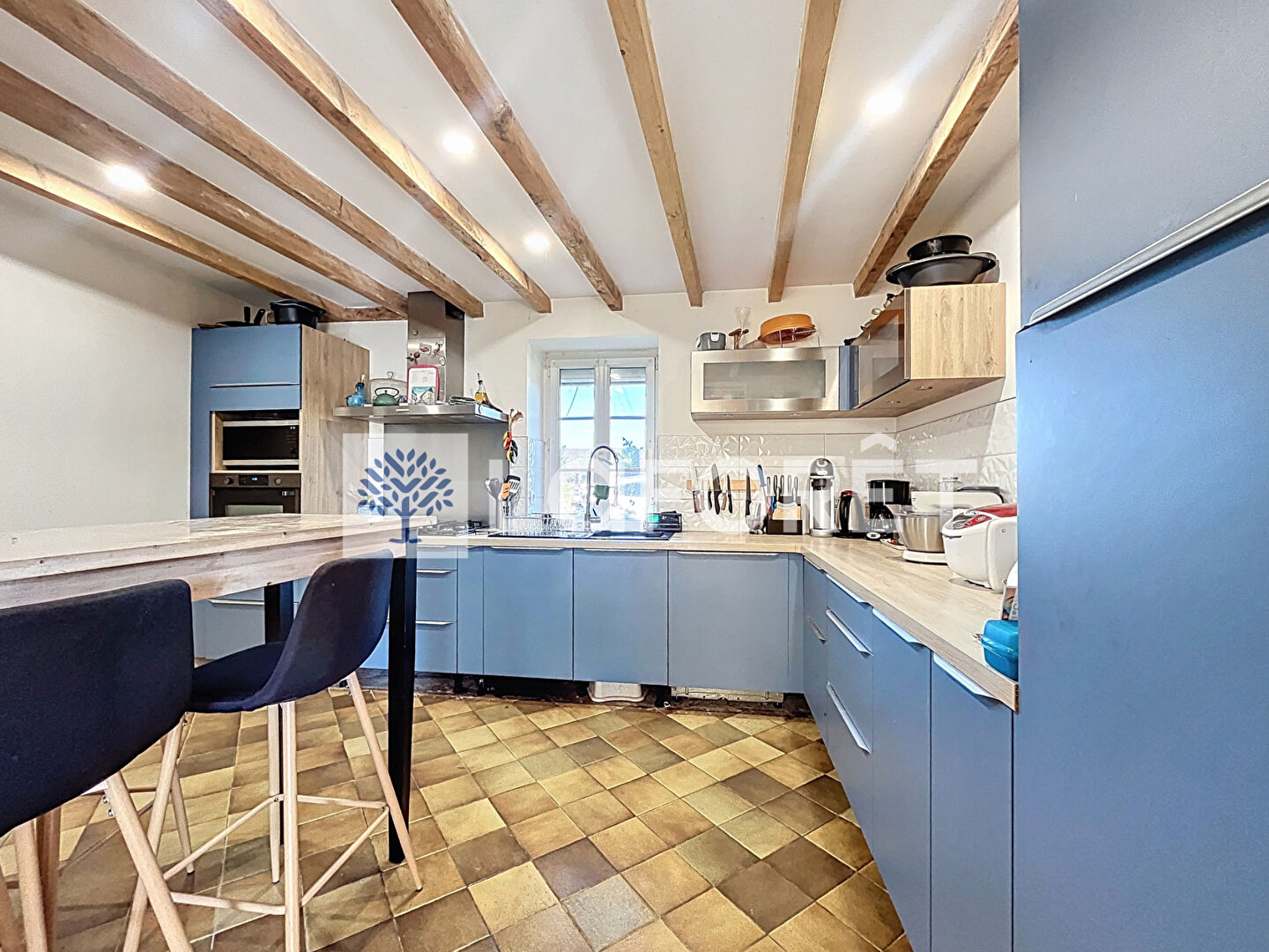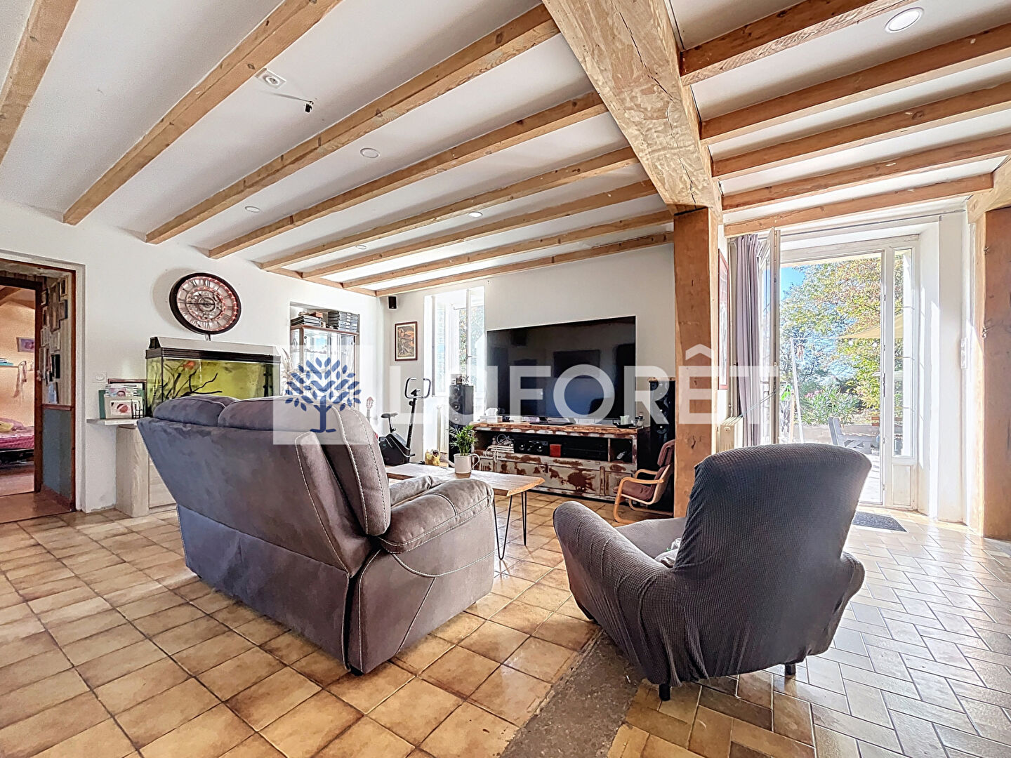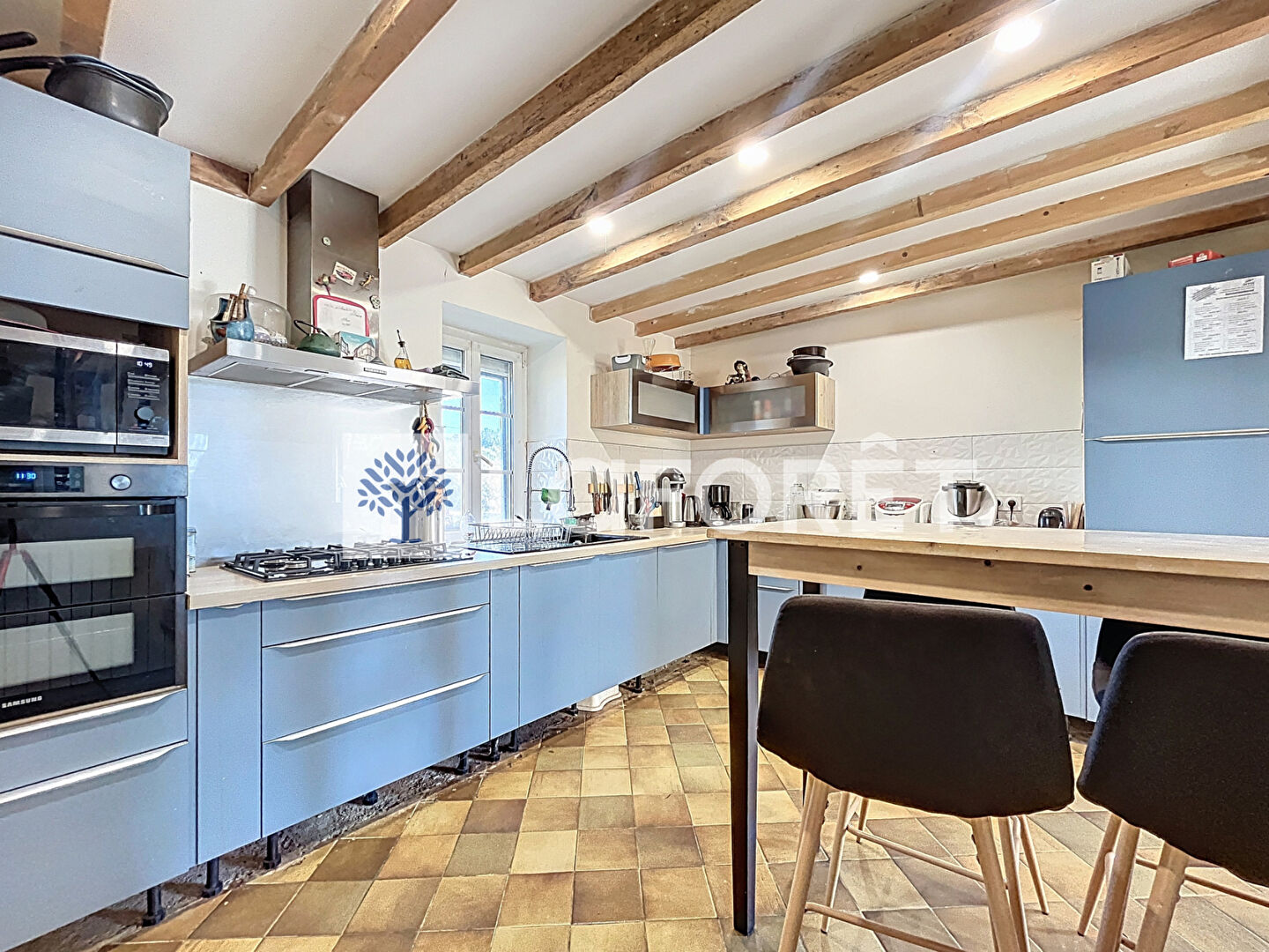 L'entrée vous conduit vers un vaste salon-séjour de 50 m², qui s'ouvre sur une cuisine entièrement aménagée et équipée, créant un espace de vie à la fois convivial et chaleureux.