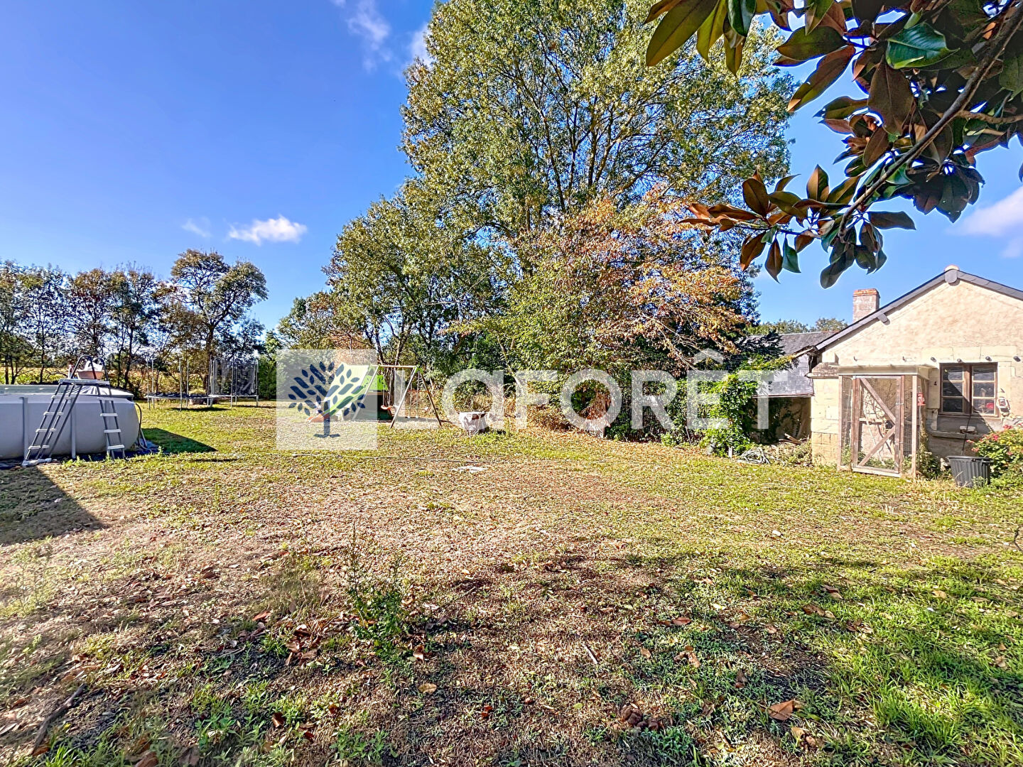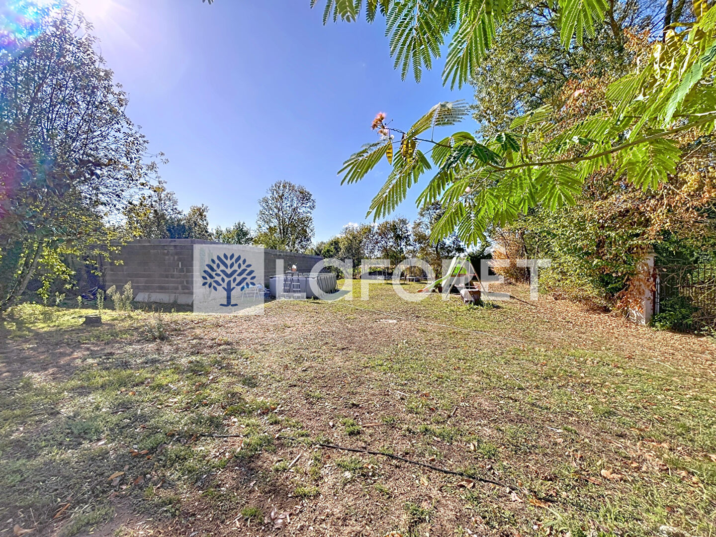 L'ensemble repose sur un vaste terrain arboré de 3 290 m².