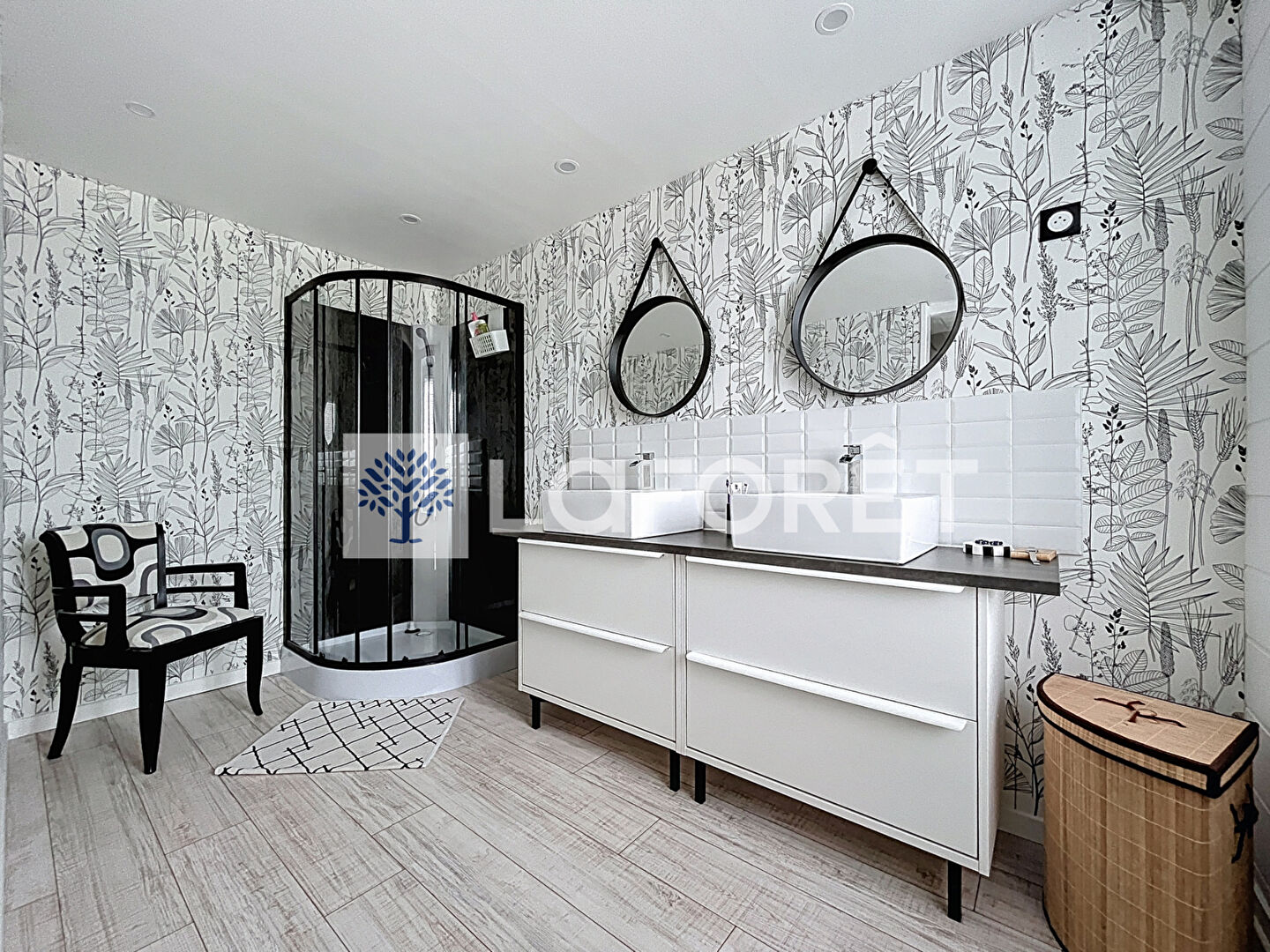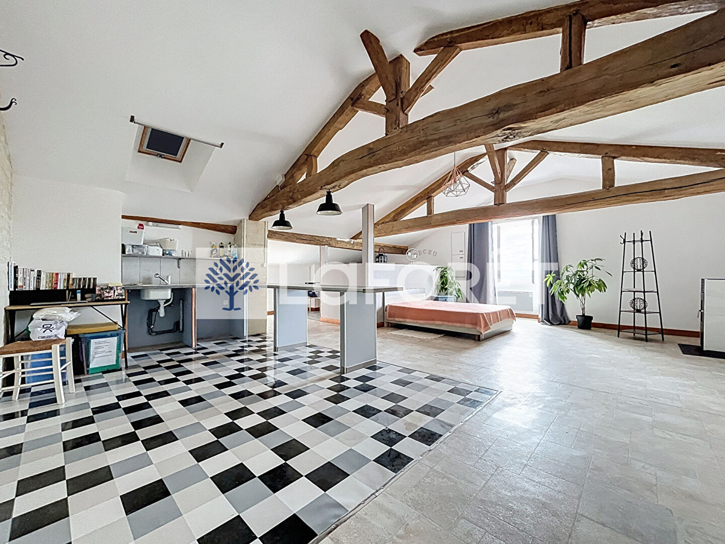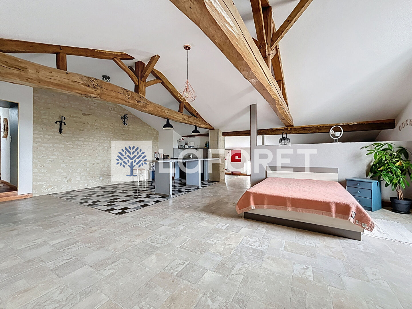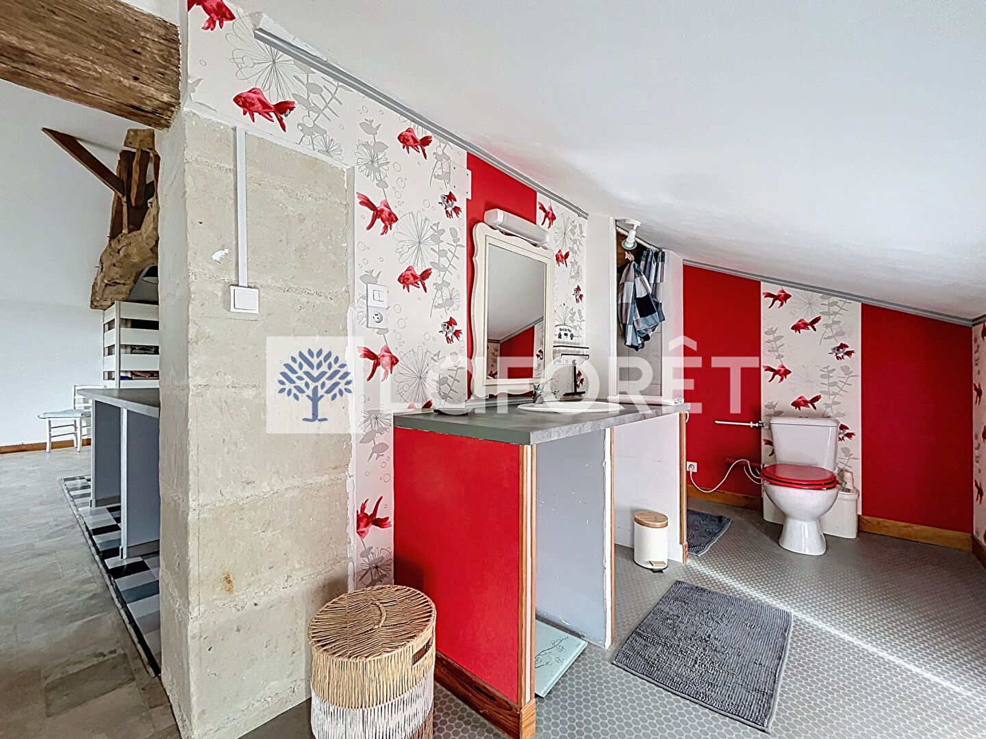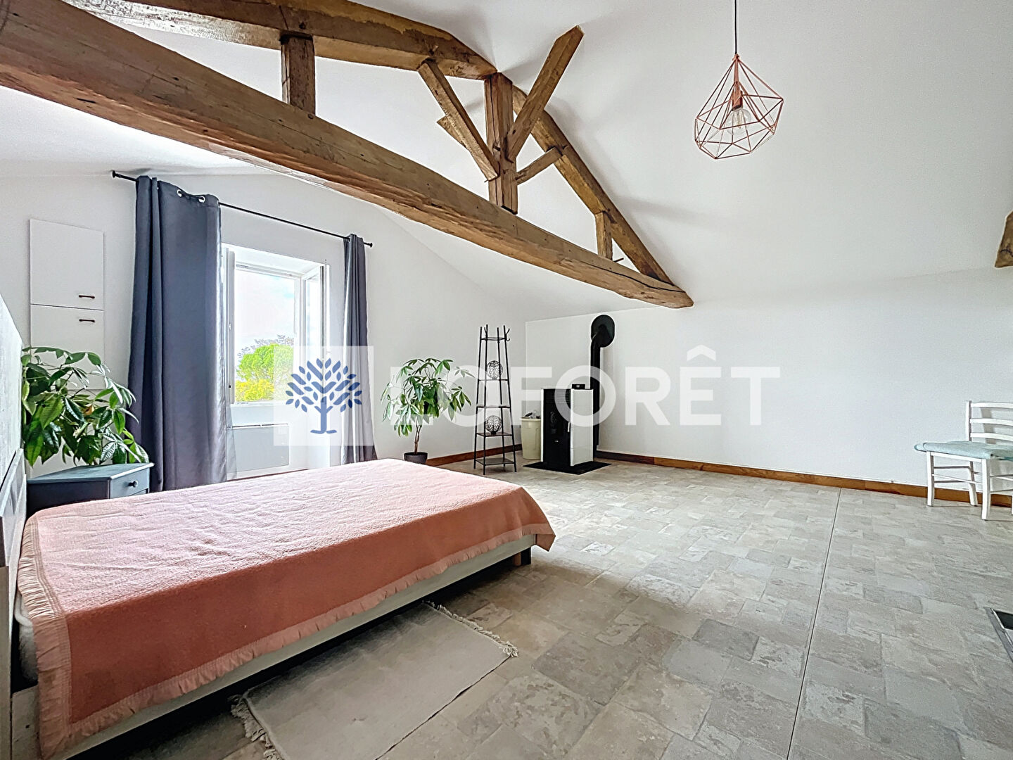 Au premier étage : la palier donne accès à deux chambres de 13 et 15m2, un wc avec placard et un "loft" d'environ 65m2 au sol avec un espace de rangement, un point d'eau avec un bar, un salle d'eau avec un wc, cette pièce est chauffé avec un poêle à granules.