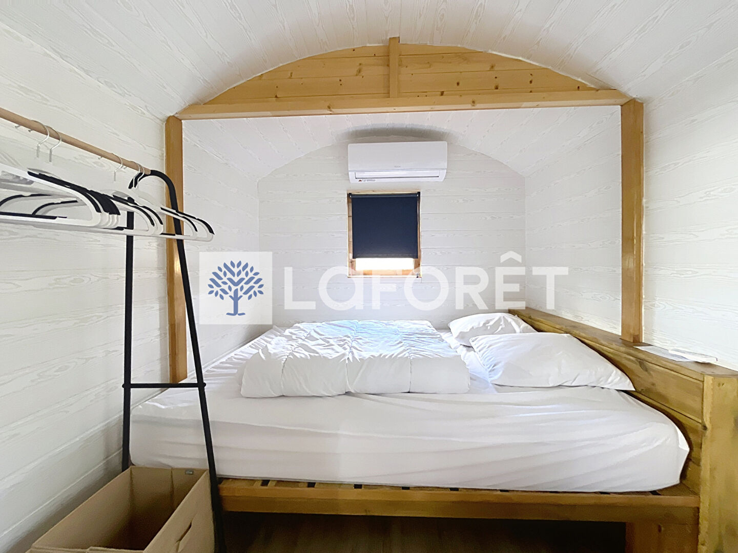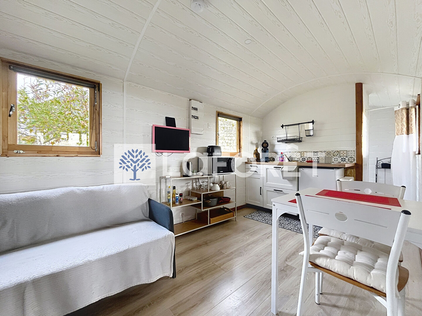 Le palier supérieur de la parcelle donne accès à un verger (avec un accès indépendant et un portail pouvant être électrifié) ou se trouve une roulotte en bois aménagée pour deux couchages, avec cuisine équipée, salle d'eau / wc et terrasse avec vue sur la vallée.