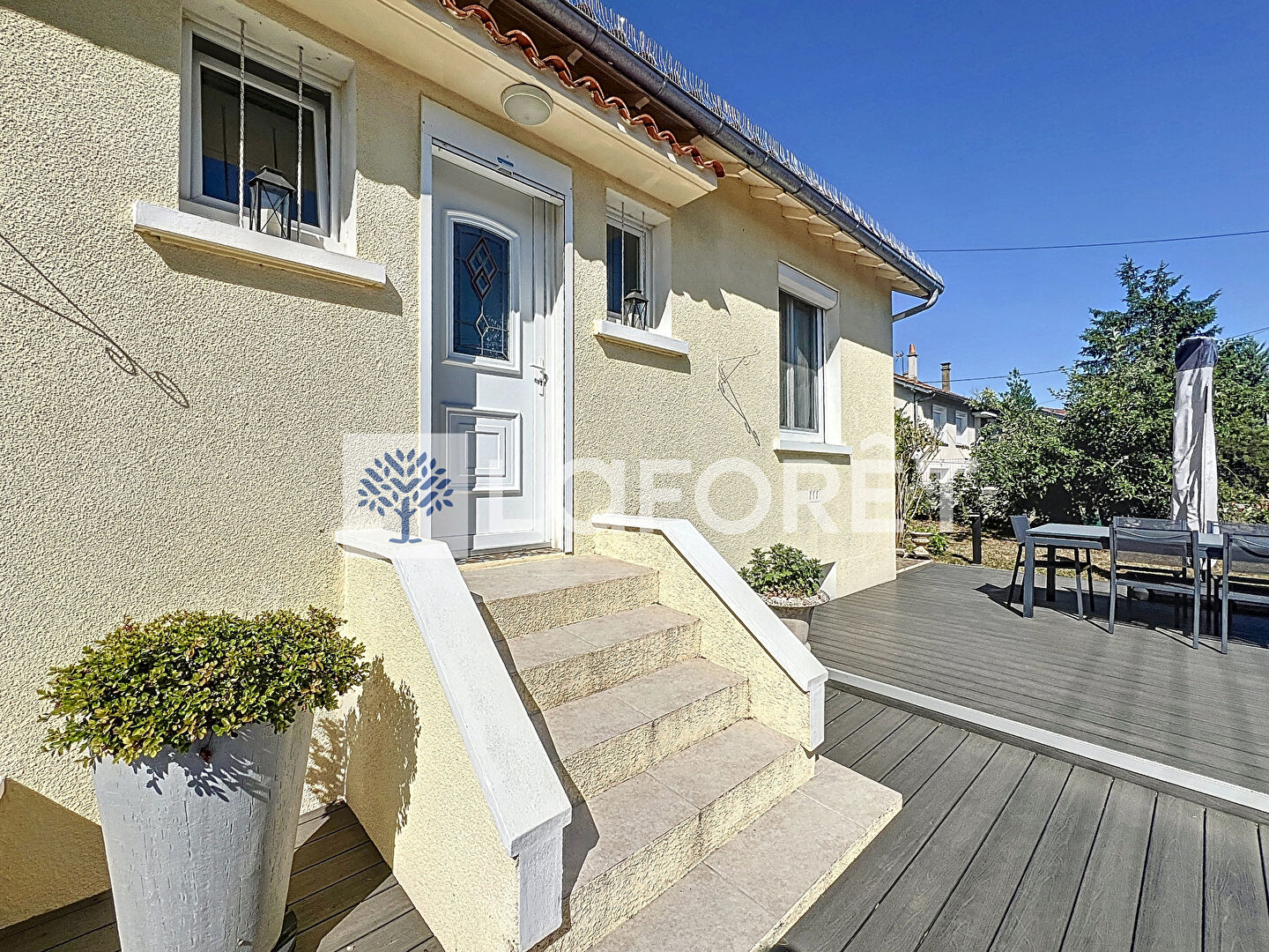L'entrée s'ouvre sur un bel espace de vie avec une cuisine aménagée, un salon et une salle à manger baignés de lumière. La maison dispose de deux chambres, d'un bureau, d'une salle d'eau et de WC.