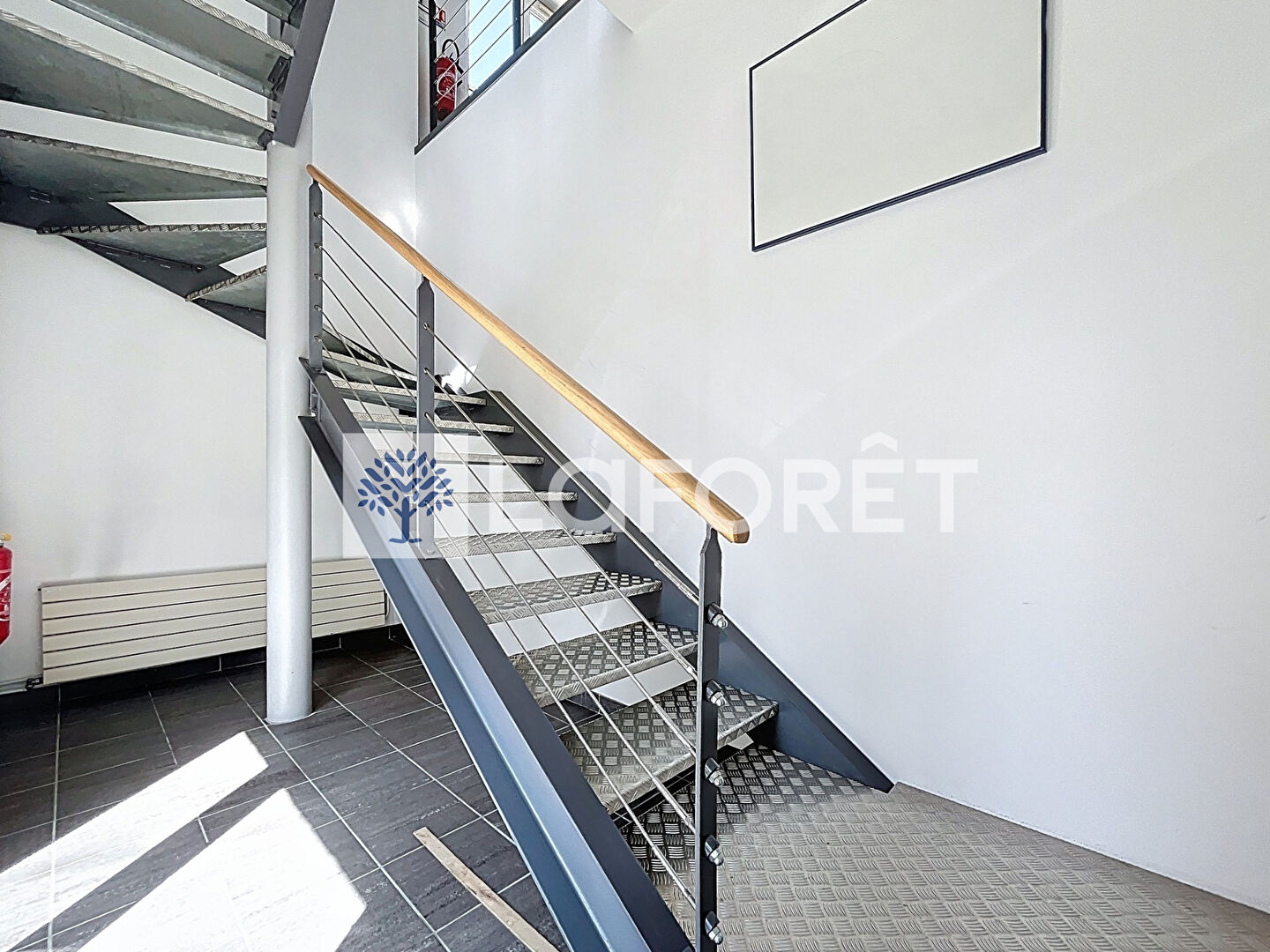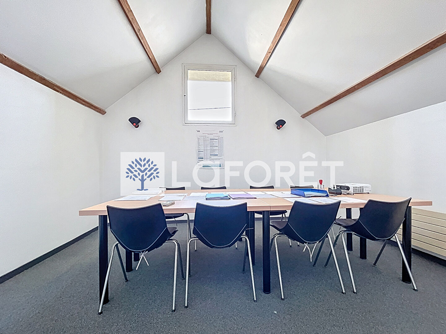 L'étage comprend un espace d'accueil d'environ 10 m², trois bureaux, une salle de réunion, un espace de stockage et un couloir fonctionnel avec sanitaires.