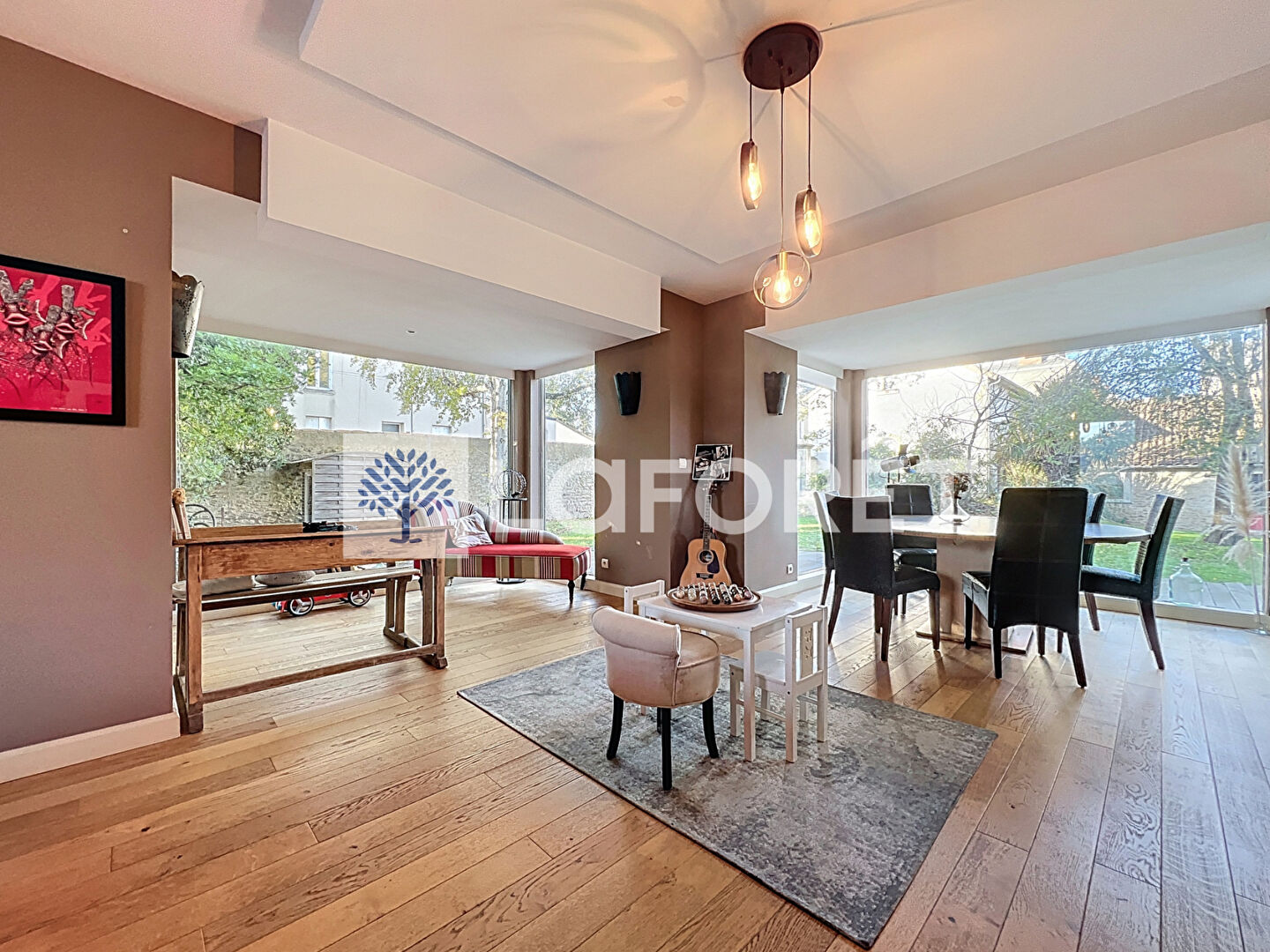 Maison d'exception en plein centre de Thouars, à proximité immédiate de toutes les commodités à pied ou à vélo. Cette maison d'architecte offre de très beaux volumes et un potentiel rare. Elle développe 300 m² habitables répartis sur trois niveaux et comprend actuellement six chambres, avec la possibilité d'en créer une septième grâce à une pièce facilement divisible.