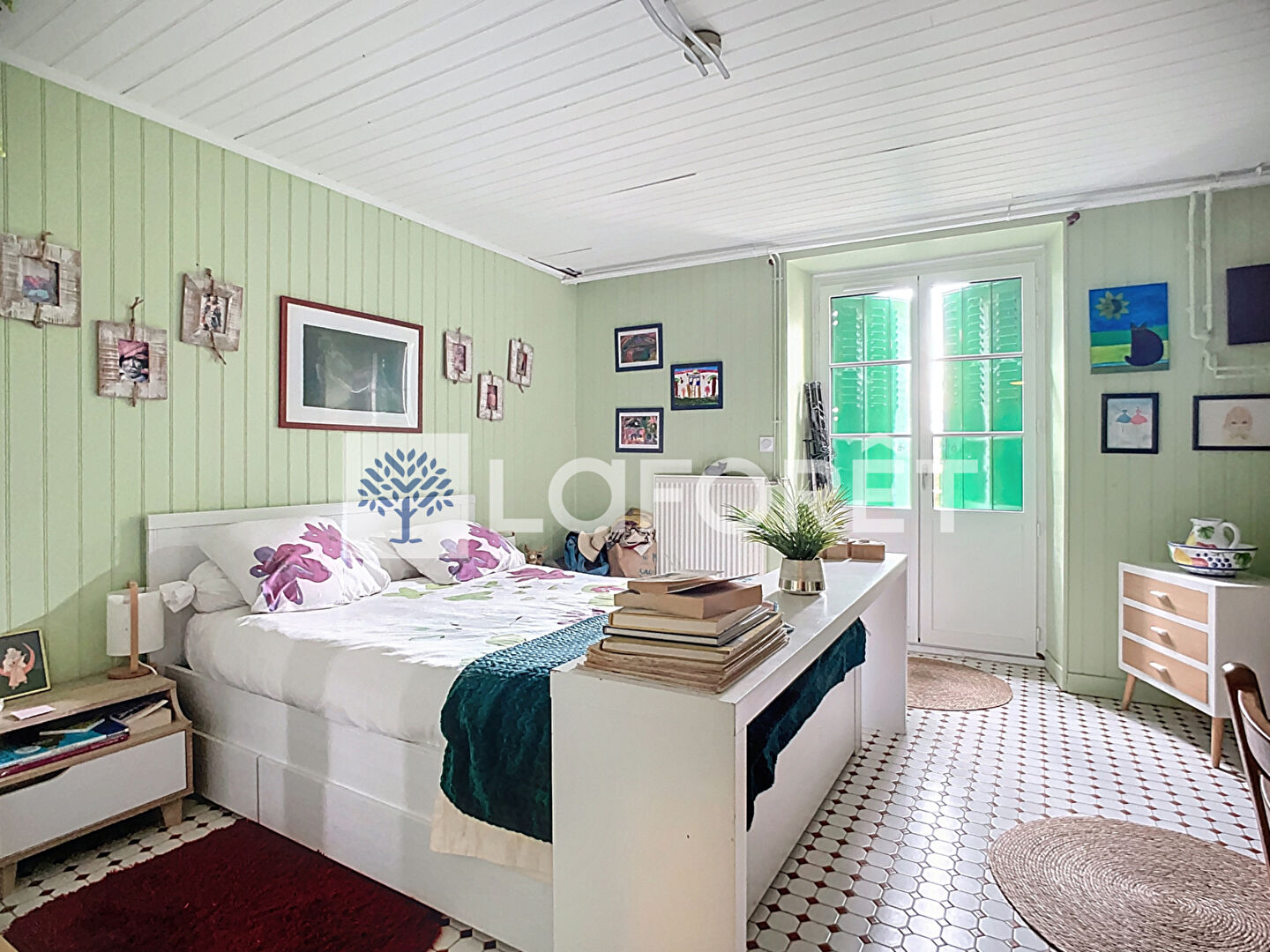 En sous sol: Une chambre chaleureuse donnant sur la terrasse, une salle de bain , wc et placard de rangement.