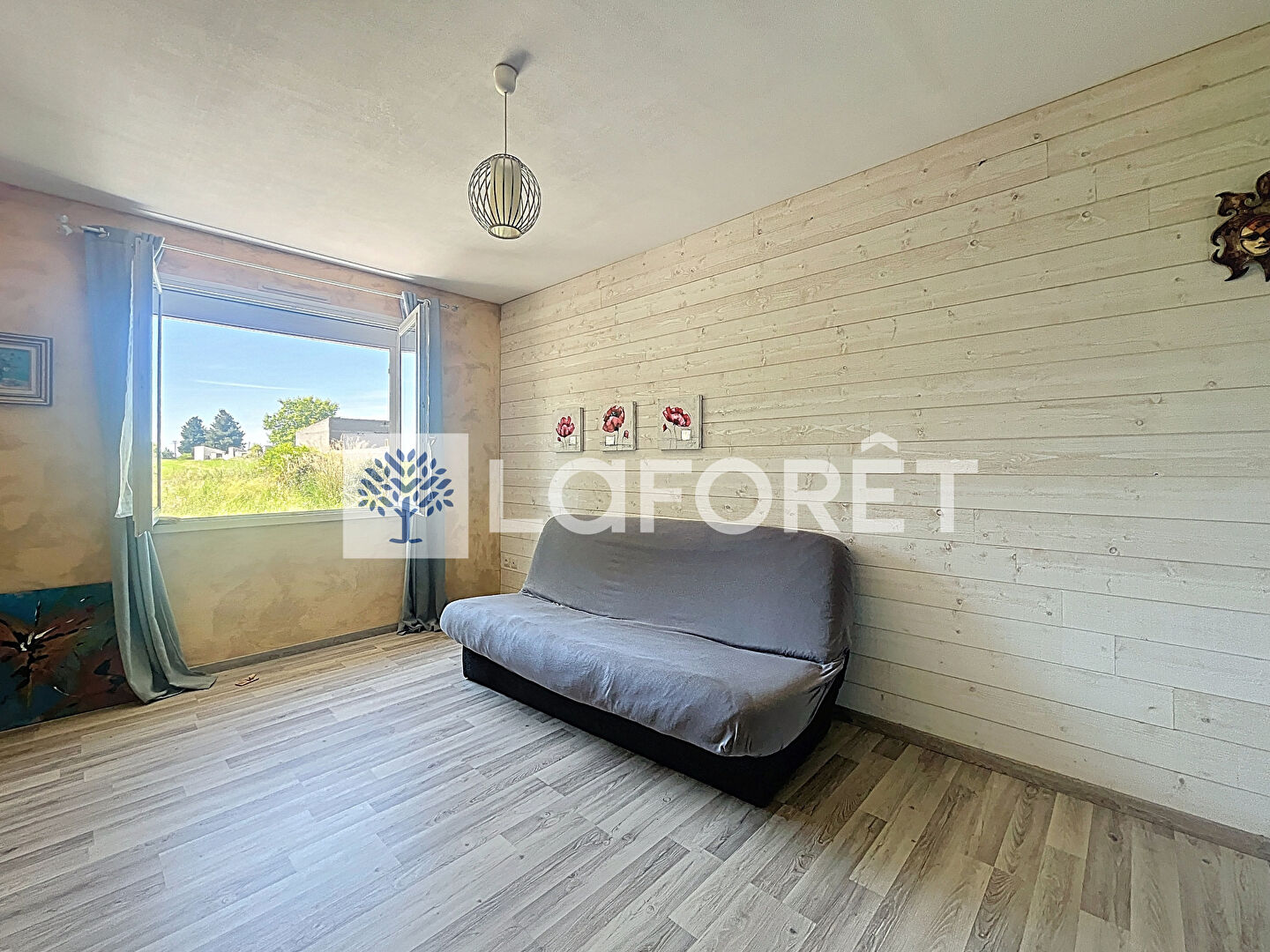 Elle se compose d'une pièce de vie lumineuse avec insert, d'une cuisine aménagée et équipée (plaque, hotte, four) et d'une buanderie.