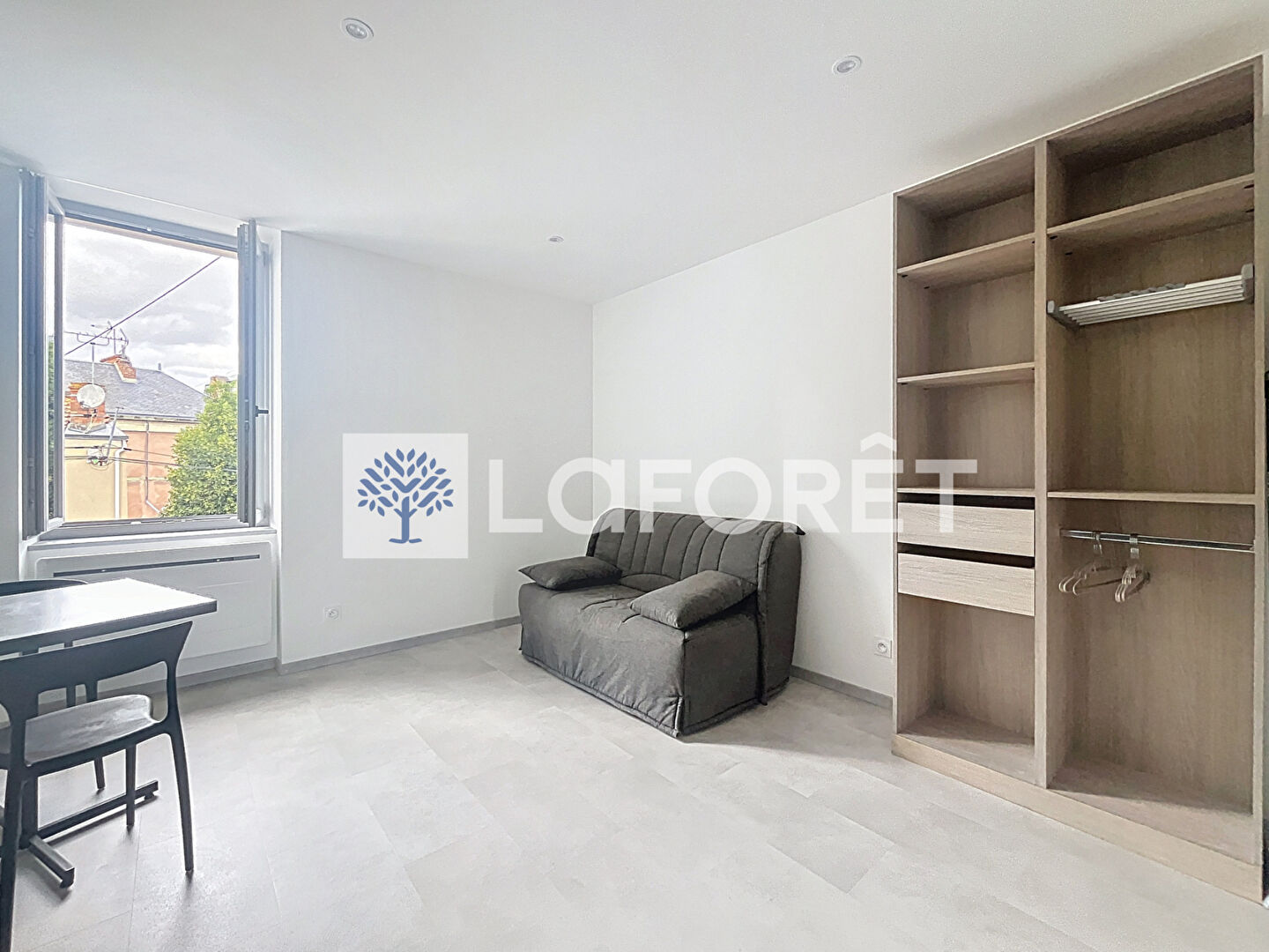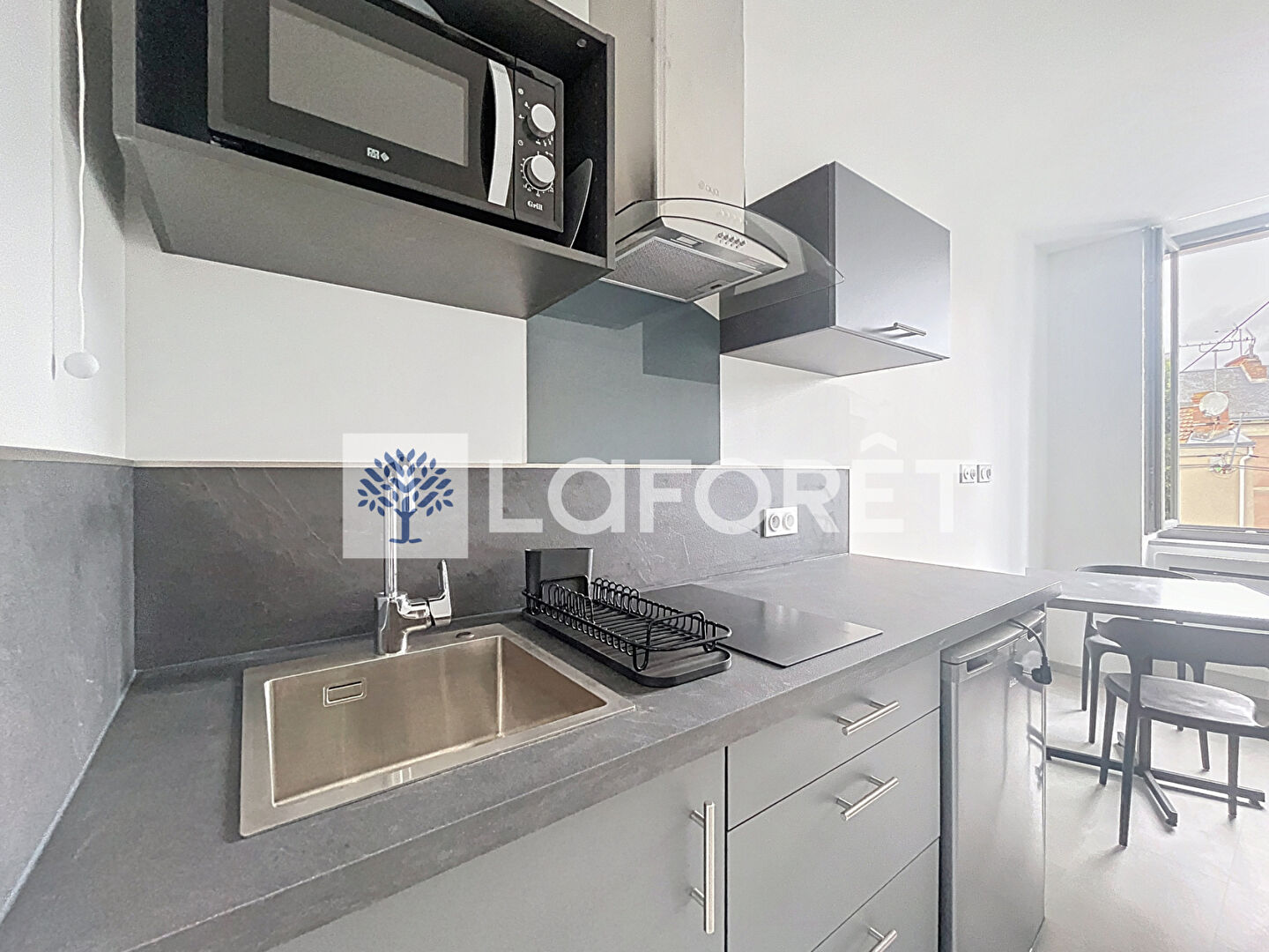Studio entièrement meublé, proche de la gare et situé au deuxième étage : entrée dans la pièce principale comprenant un coin cuisine aménagé et équipé, table de repas et canapé-lit et une salle d'eau avec wc.