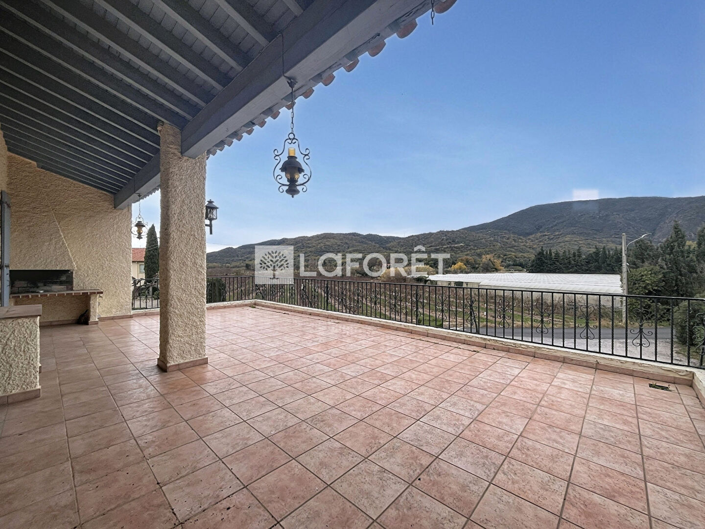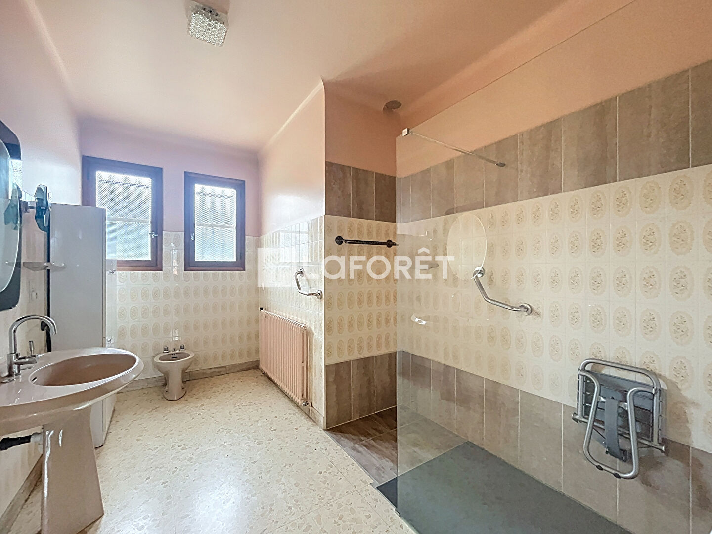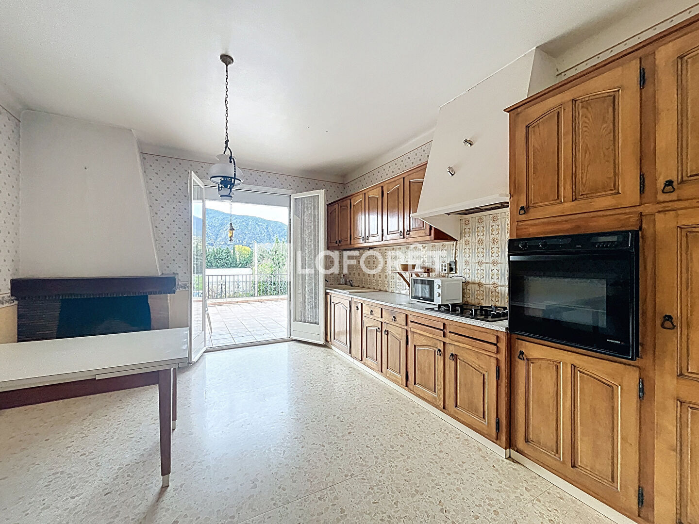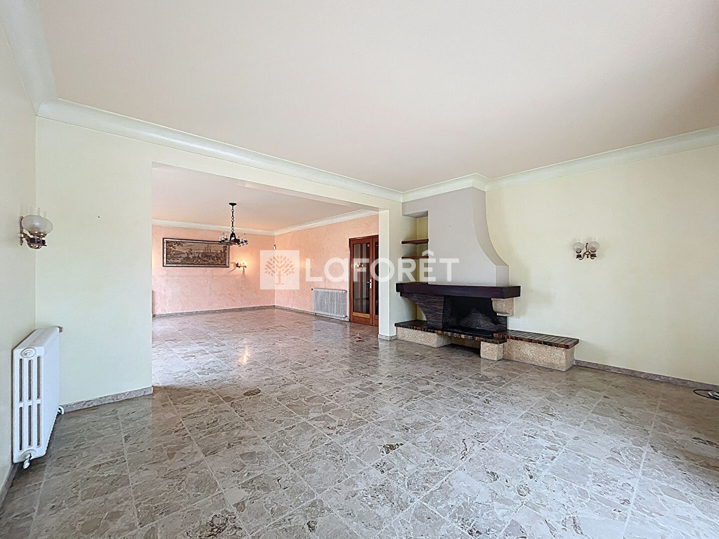 À l'étage, un vaste séjour/salle-à-manger de 58 m² lumineux et chaleureux, équipé d'une cheminée à foyer ouvert offre un accès direct à une grande terrasse de 50 m² avec barbecue. Vous profiterez également d'une cuisine aménagée avec son accès direct à la terrasse et d'un cellier séparé.