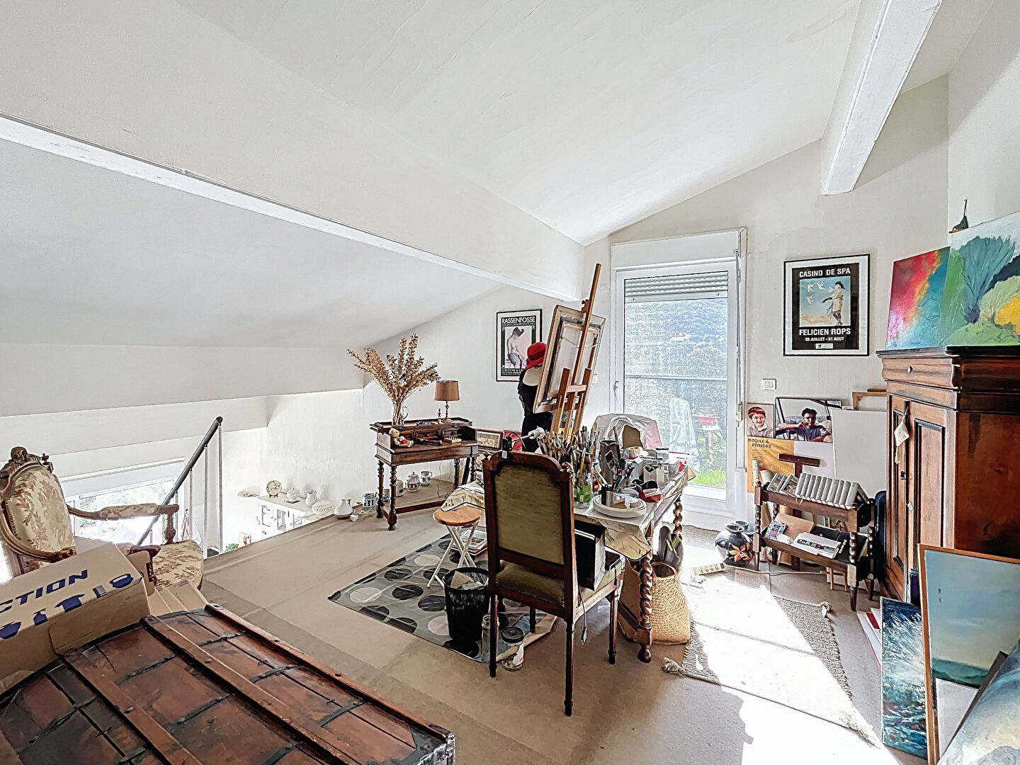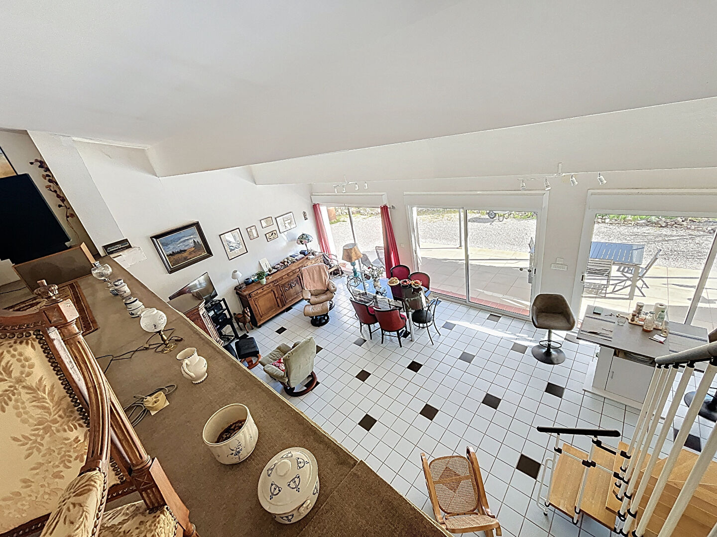 Profitez de vues dégagées sur la Méditerranée et les reliefs environnants, dans un environnement calme et privilégié. La pièce de vie d'environ 40 m², baignée de lumière grâce à son exposition idéale, s'ouvre sur une superbe mezzanine de même surface qui surplombe l'ensemble et apporte volume et caractère.