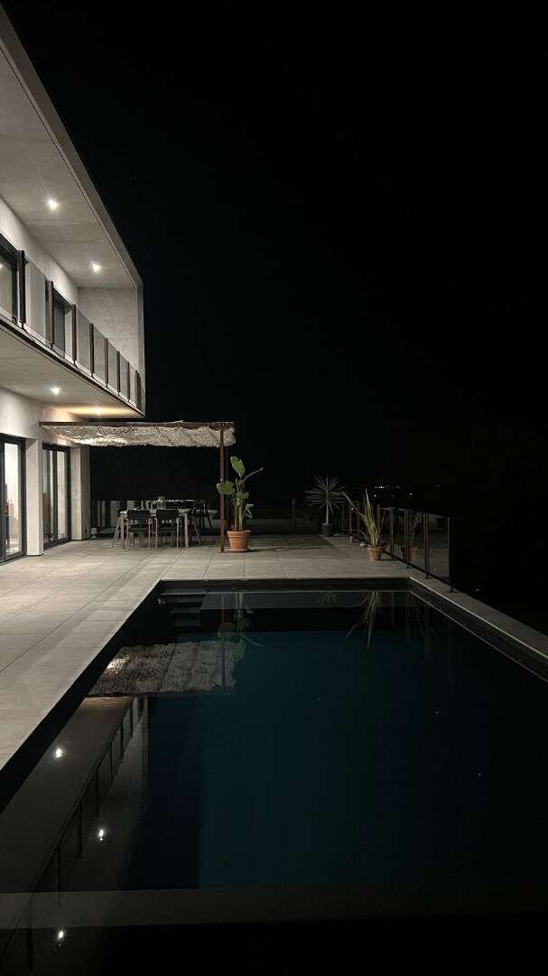 Elle offre une pièce de vie spectaculaire de 80 m², baignée de lumière grâce à ses larges baies vitrées ouvrant sur la terrasse et la piscine, une cuisine moderne et fonctionnelle qui ravira les amateurs de convivialité et de design, une suite parentale de 29 m², deux chambres avec dressing, une salle de bains, une buanderie et un garage.