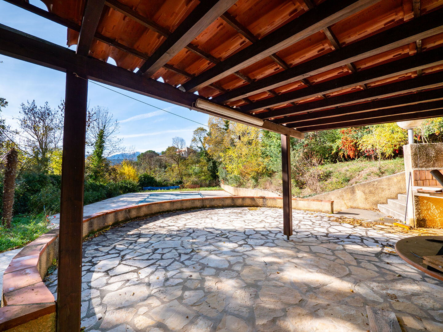 Profitez également sur la partie extérieure d'une spacieuse cuisine d'été avec son barbecue, vue dégagée sur la piscine et la nature environnante.