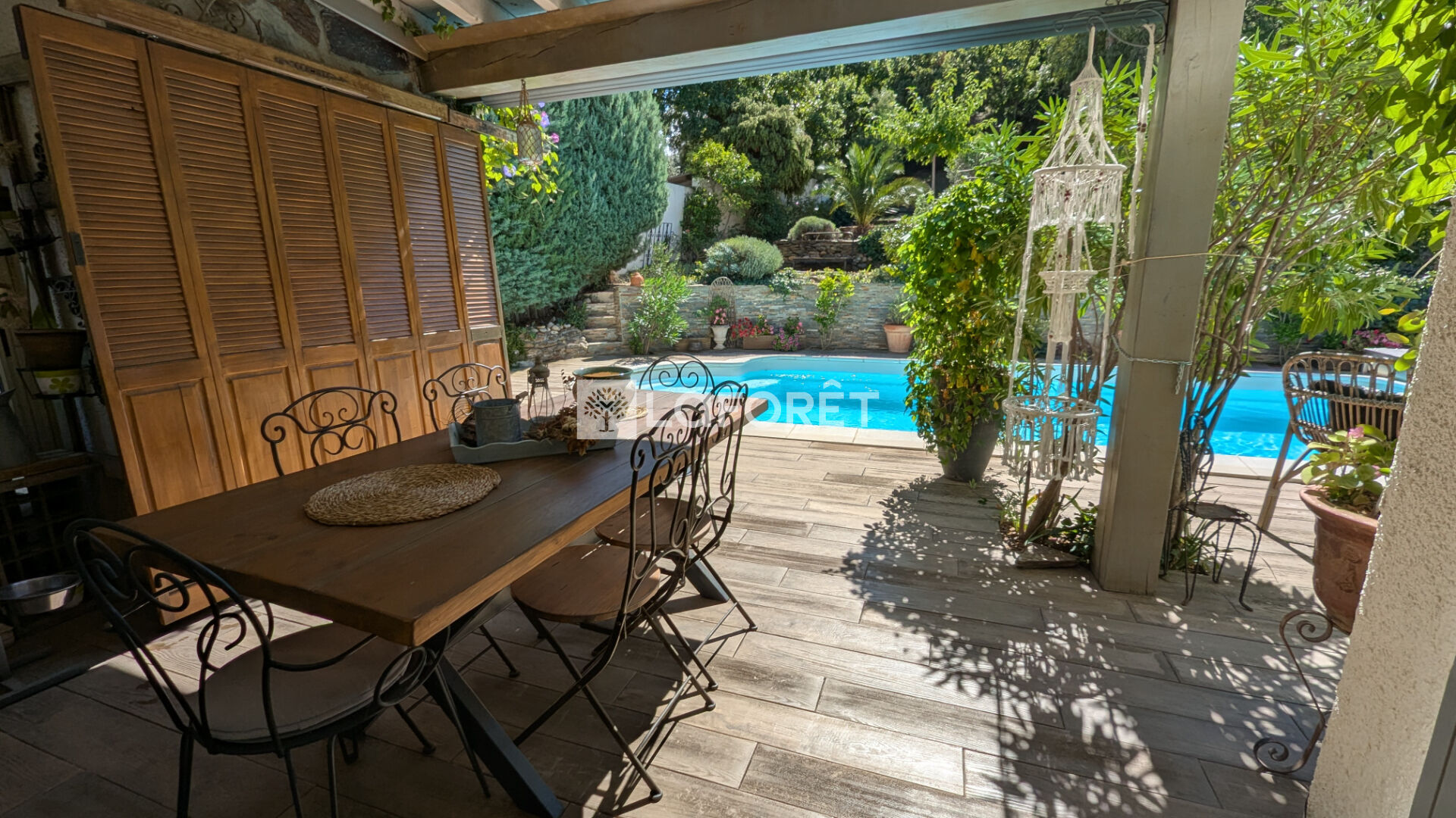 À l'extérieur, vous profiterez d'un cadre idyllique et intime avec piscine, terrasse couverte avec barbecue, pergola et terrain de pétanque.
