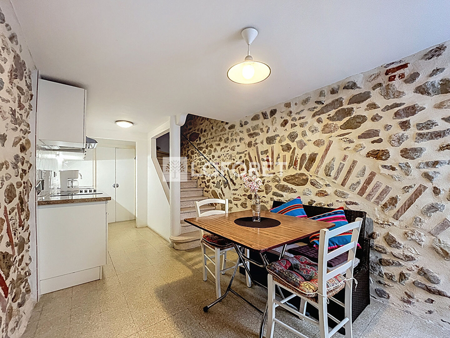 Elle se compose d'un salon ouvert sur la cuisine, idéal pour les moments de convivialité, d'un cellier, d'une salle d'eau, ainsi que de deux WC dont un intégré à la salle de bains.