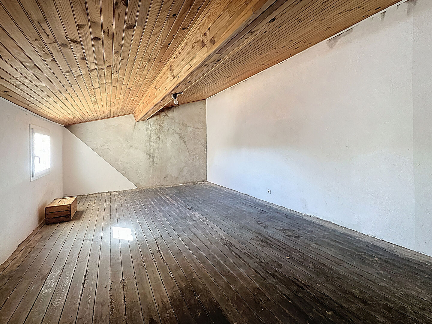 Elle se compose d'un séjour avec cuisine ouverte, buanderie, WC indépendant, 2 chambres à l'étage avec salle de bains, et combles aménagés avec mezzanine.