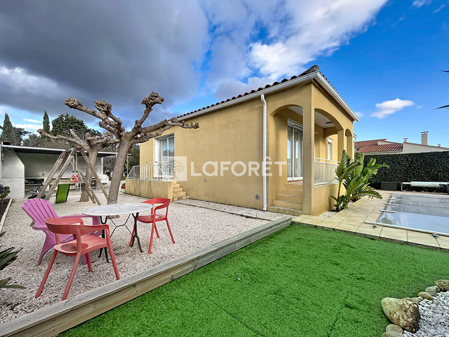Dès l'entrée, vous découvrez un double séjour lumineux avec cuisine ouverte, véritable coeur de la maison, idéal pour recevoir et partager des moments conviviaux. L'ensemble s'ouvre naturellement sur l'extérieur, où vous attendent une piscine, un espace cuisine d'été avec barbecue et une terrasse propice aux longues soirées d'été.