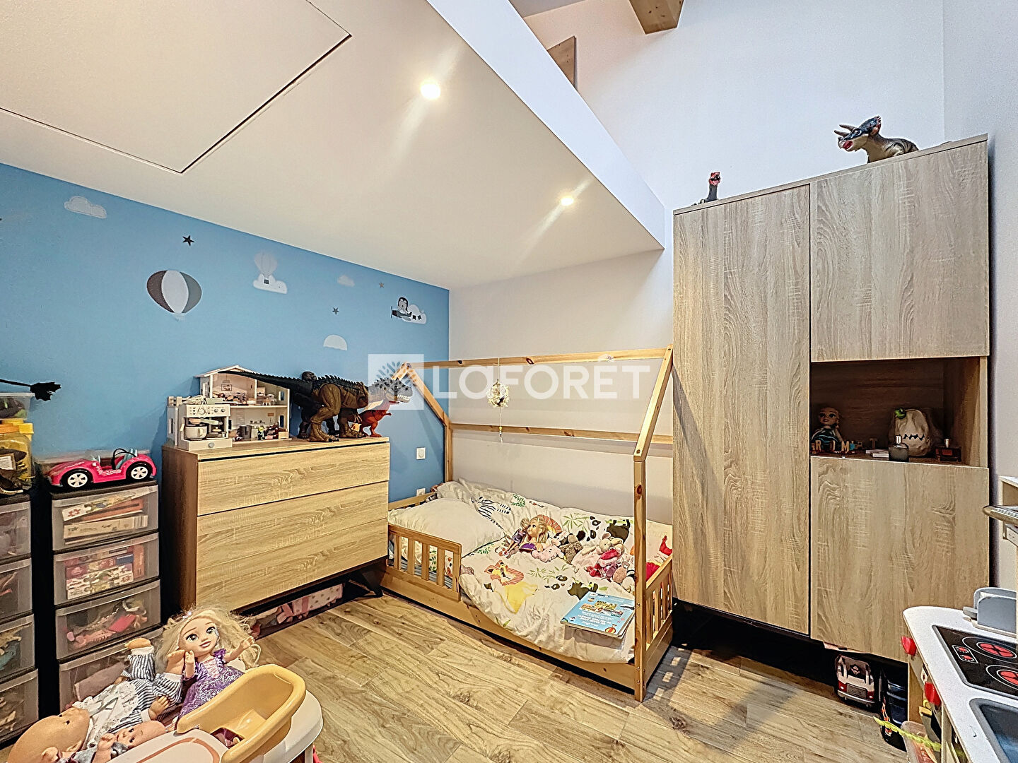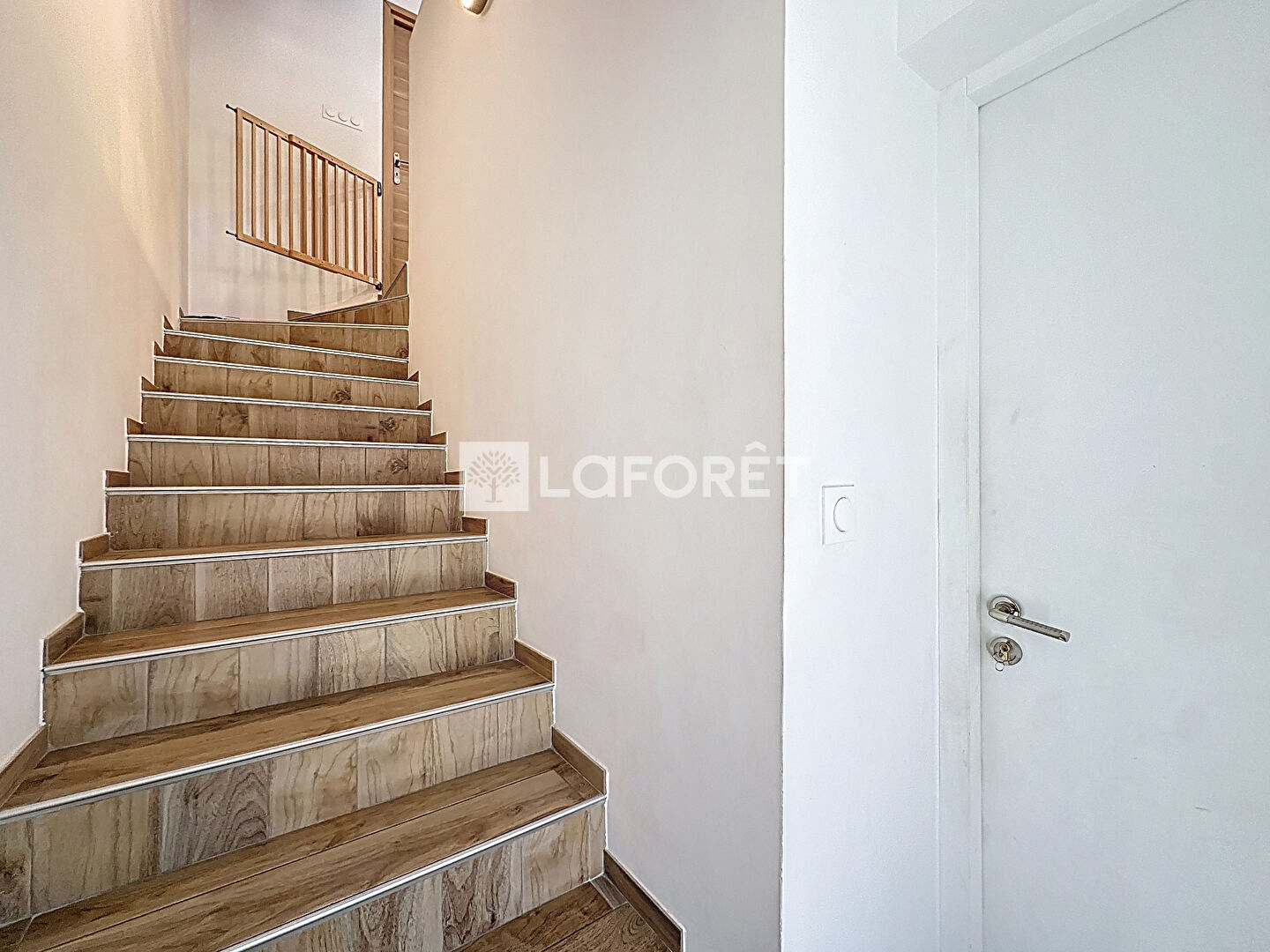 Elle offre en rez-de-chaussée un garage carrelé avec portail électrique, un WC avec point d'eau. A l'étage, une agréable pièce de vie avec cuisine ouverte et buanderie, puis au deuxième deux chambres, dont une avec placard, ainsi qu'une salle d'eau avec WC et velux.