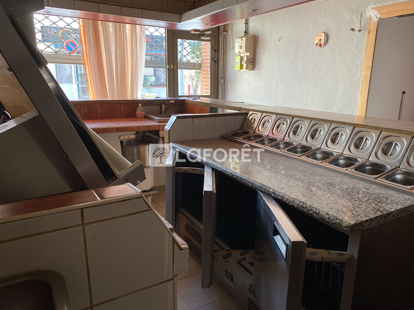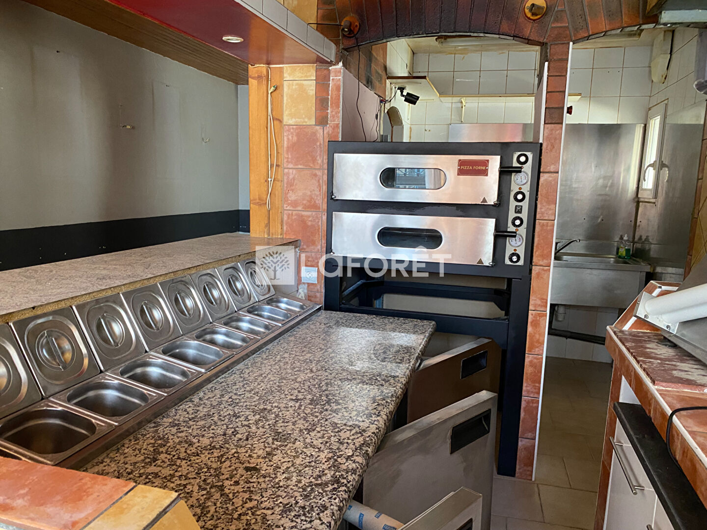 Entièrement équipé en pizzeria avec matériel professionnel (fours, frigos, hotte, plonge, comptoir)
