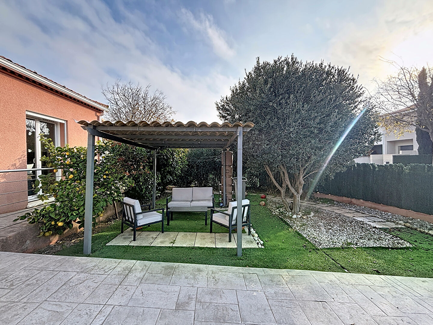 Conçue pour être aux normes handicapées (PMR) et climatisée, la maison assure un confort constant, été comme hiver.