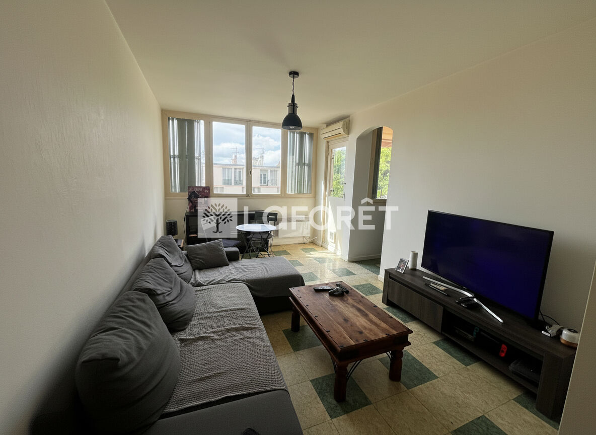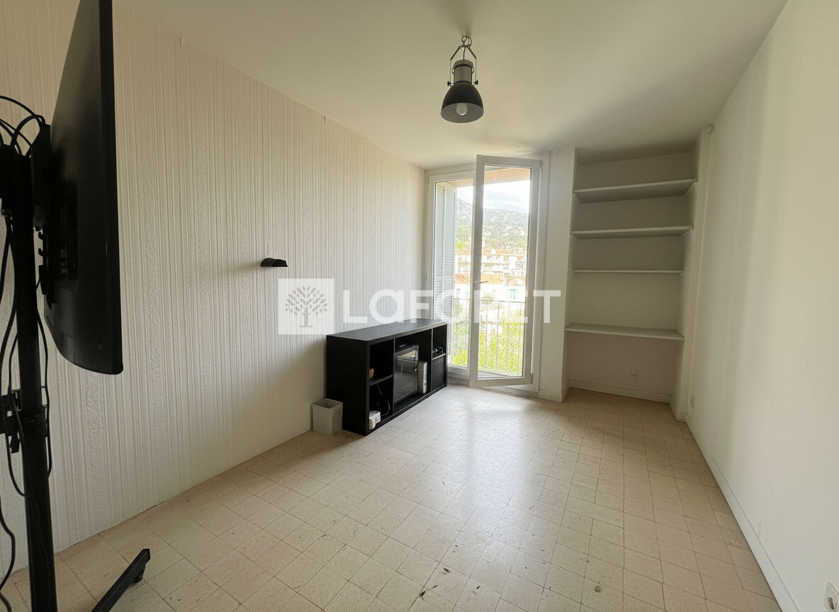 L'appartement se compose d'un séjour lumineux, de deux chambres avec placards intégrés, chacune disposant d'un garde-corps offrant une vue dégagée et agréable sur le Mont Faron.