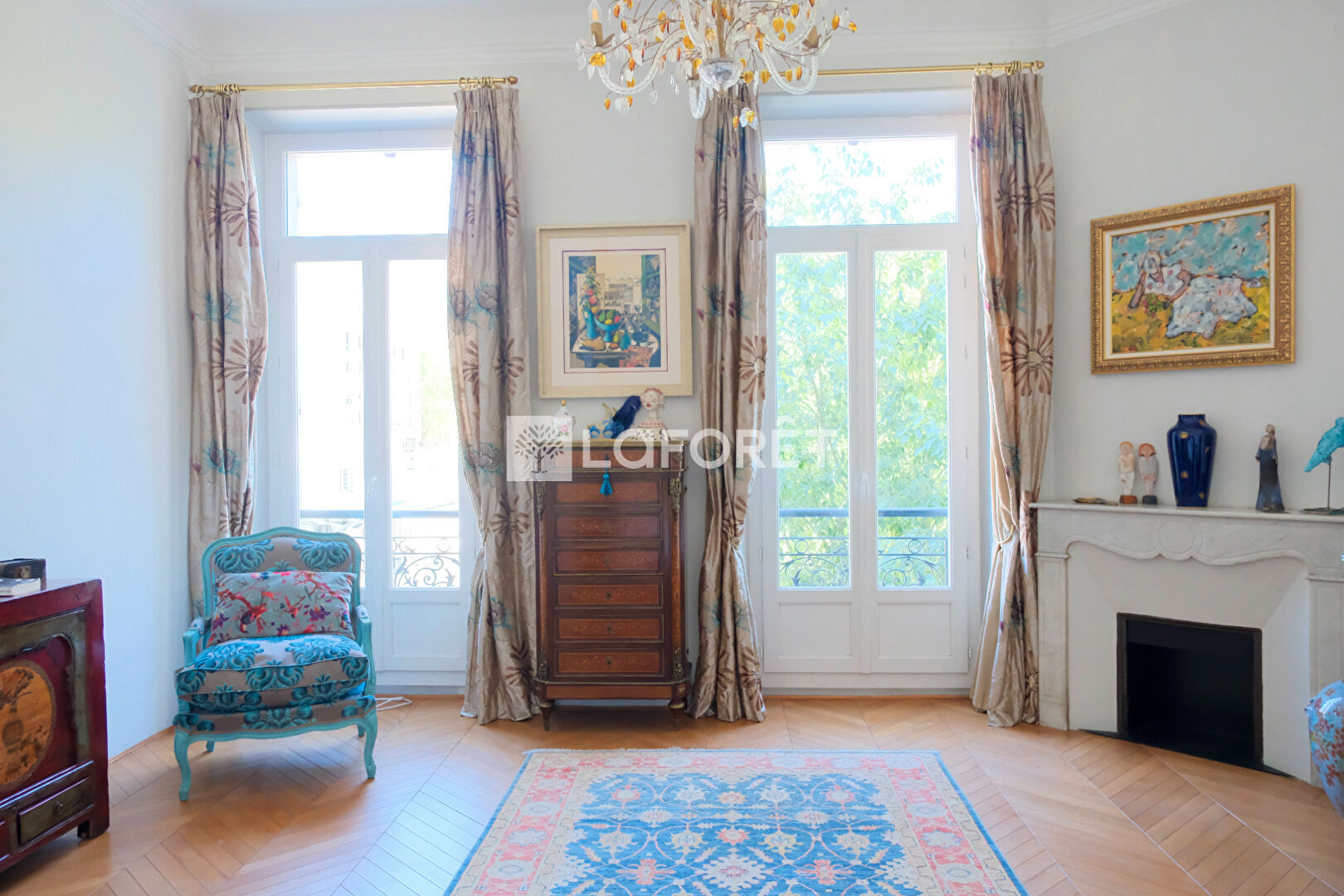 Dès l'entrée, vous serez conquis par la noblesse des matériaux : parquets en pointe de Hongrie, hauts plafonds de 3,40 m, moulures et cheminées dans chaque pièce, carrelages damiers noir et blanc, et une lumière naturelle omniprésente grâce aux nombreuses ouvertures sur l'extérieur.