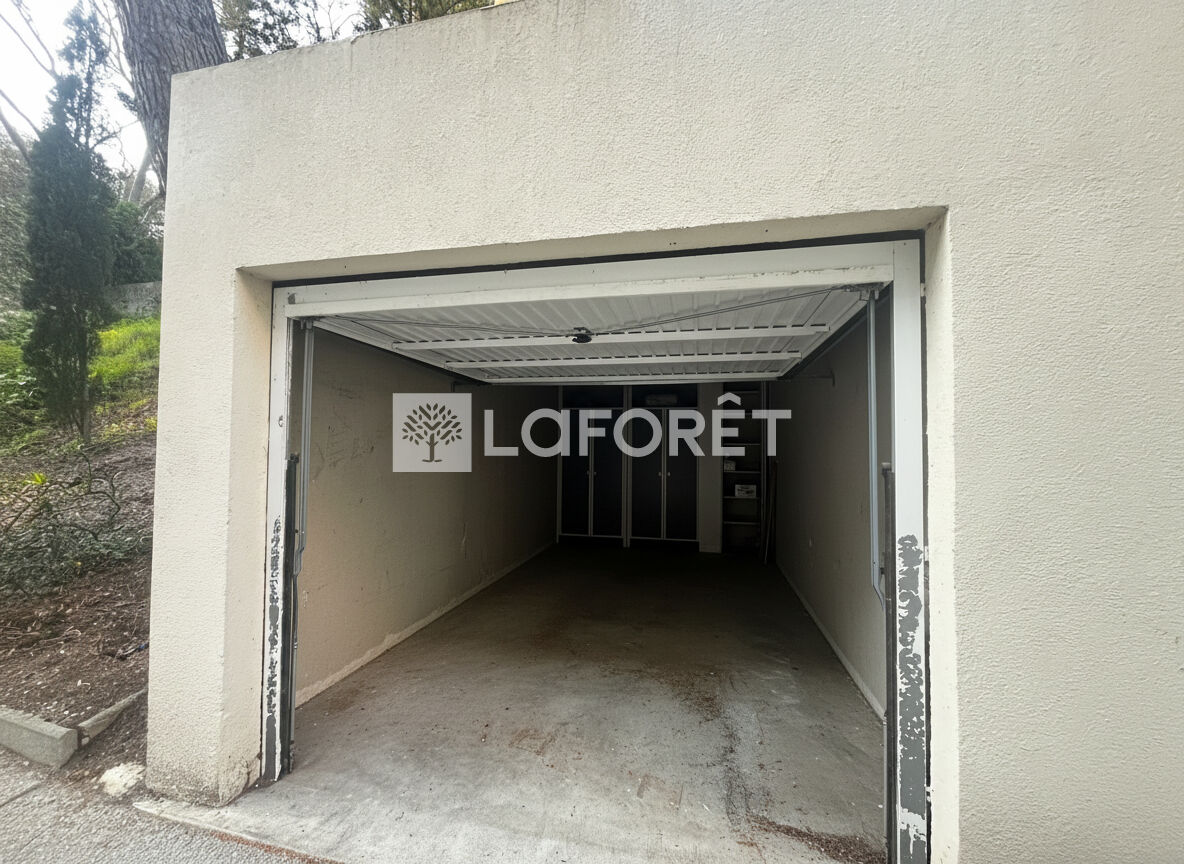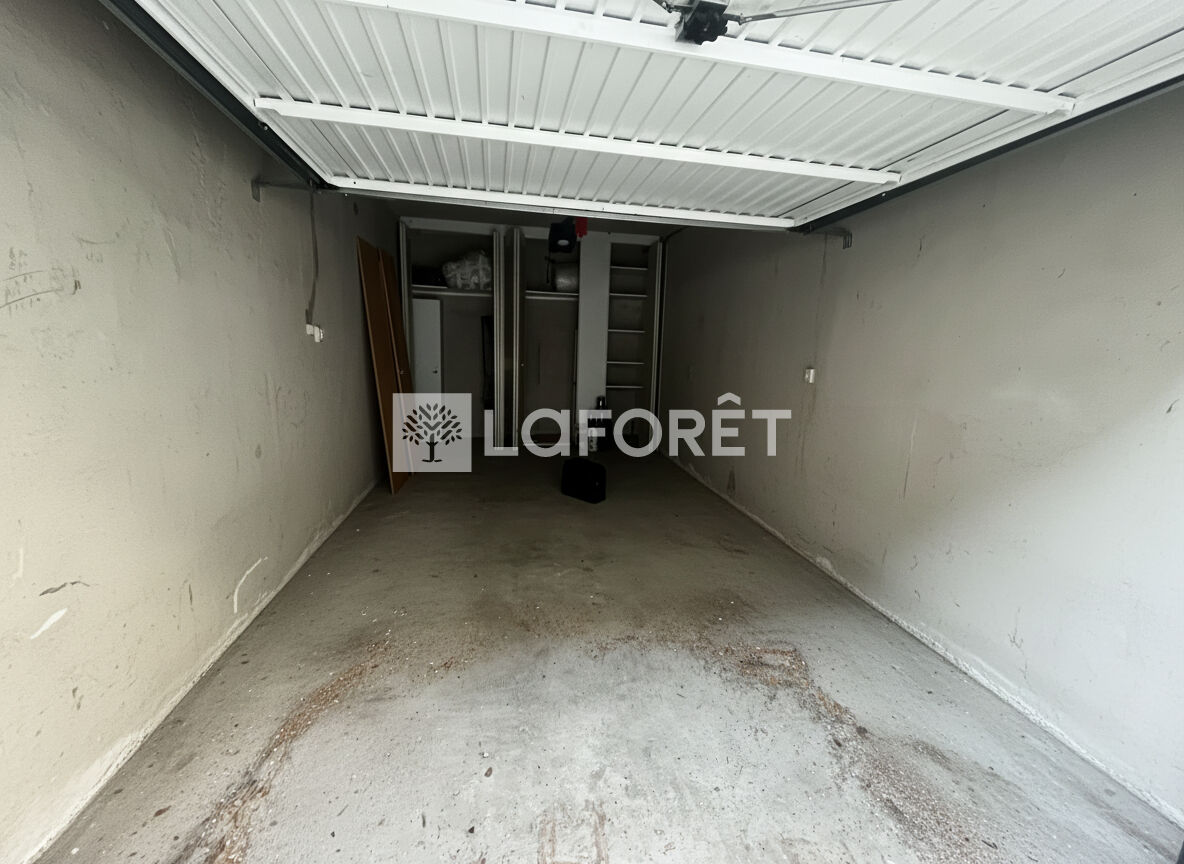 Le box dispose de l'électricité et de nombreux rangements, idéal pour stationnement, stockage ou usage professionnel.