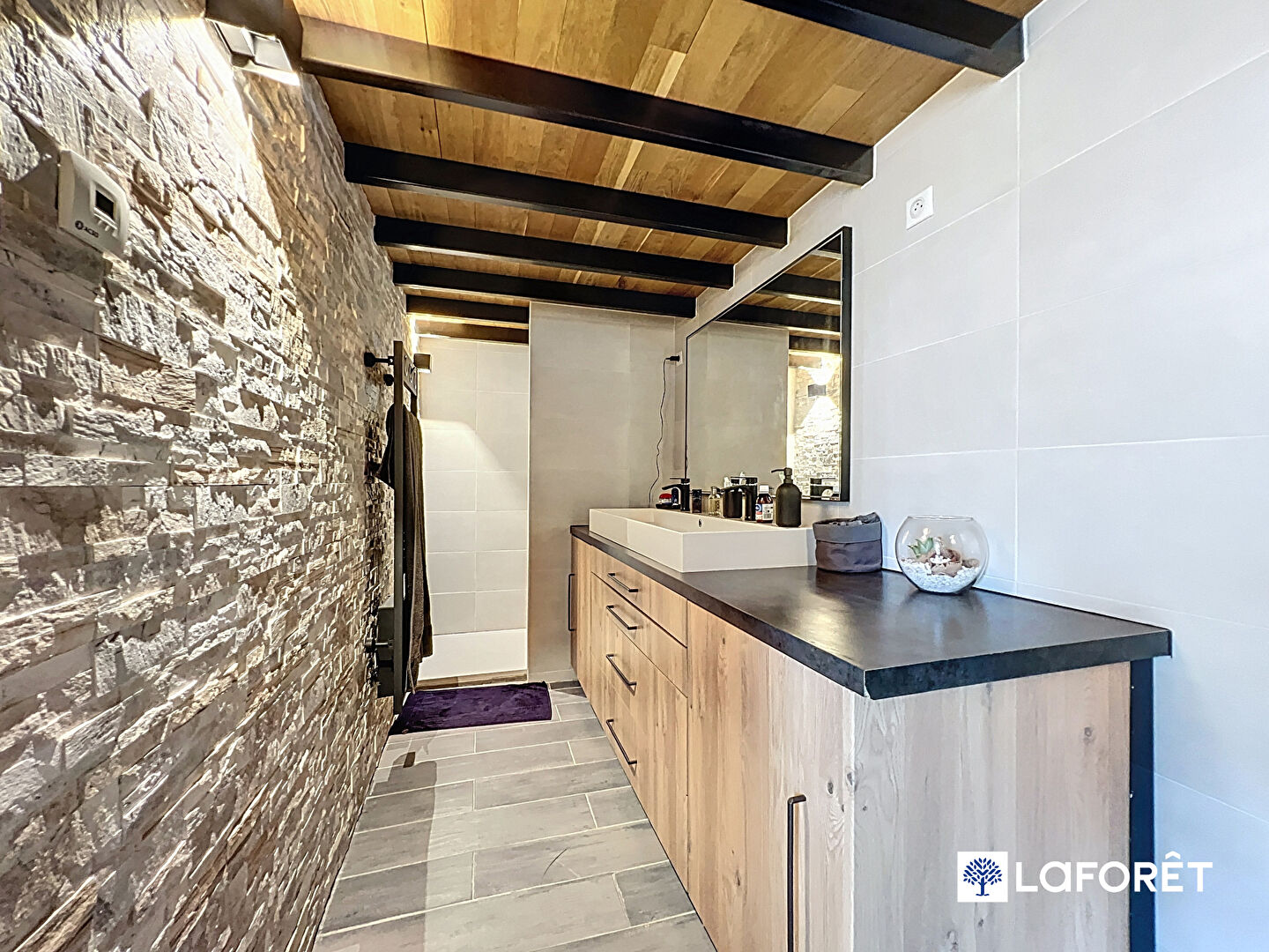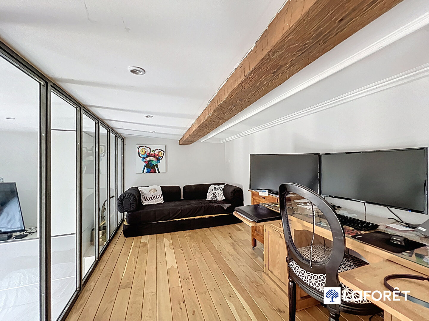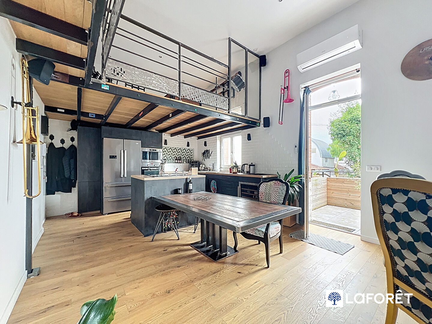 Parquet massif, poutres apparentes, structure en fer forgé, double vitrage, climatisation réversible, électricité aux normes, système audio intégré etc.