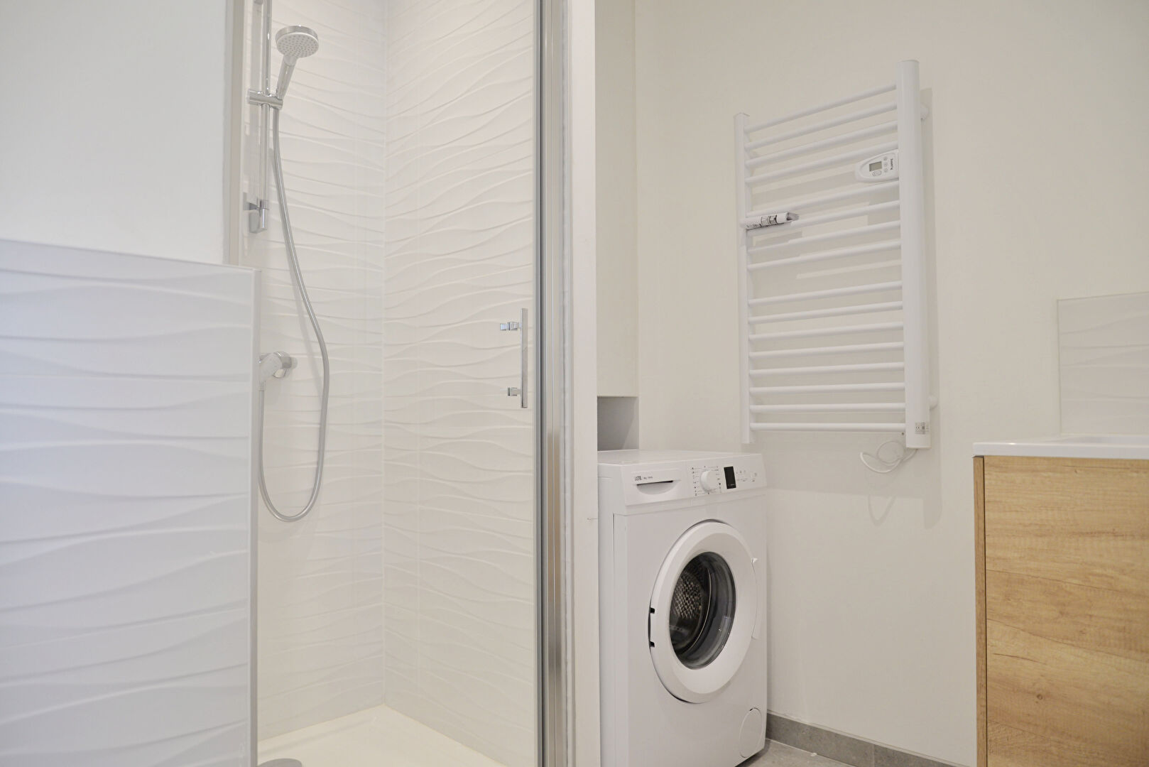 L'appartement, lumineux et bien agencé, comprend une cuisine équipée, une salle d'eau moderne avec WC, d'une chambre confortable et bénéficie d'une climatisation réversible.