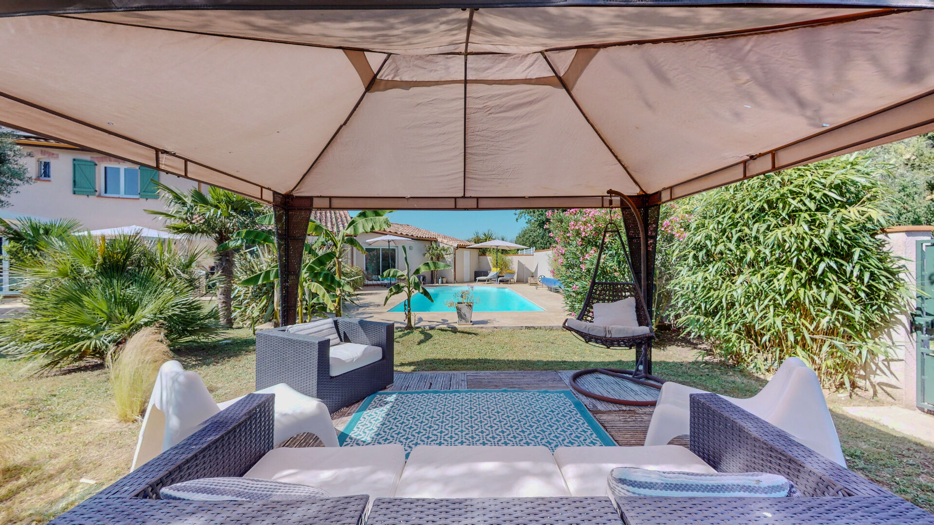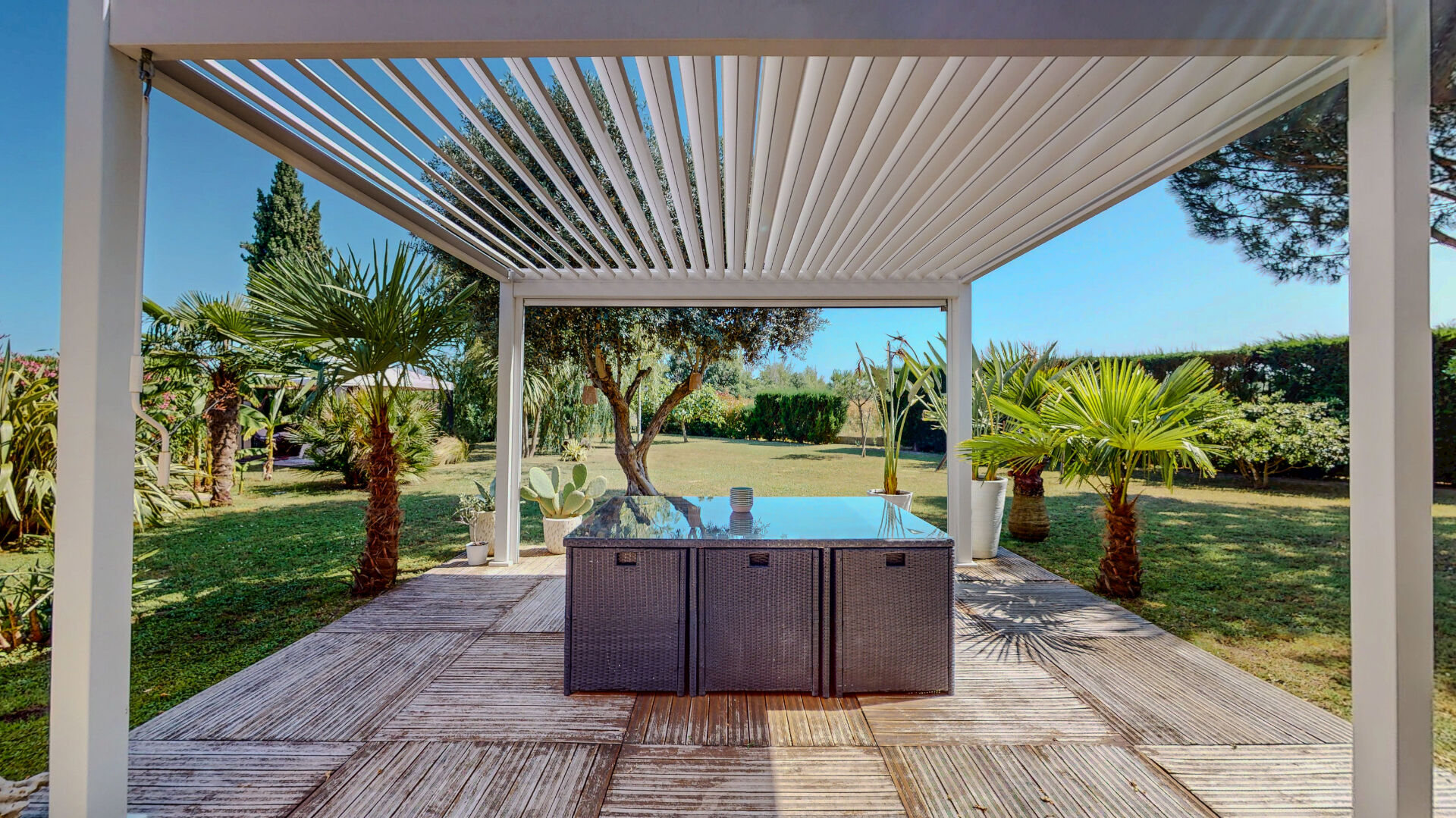 Dès votre arrivée, une allée goudronnée vous conduit jusqu'à un garage de 50 m², idéal pour stationner plusieurs véhicules, créer un atelier ou stocker aisément vos équipements. Le jardin paysager, véritable cocon de nature, invite à la détente : piscine scintillante, terrasse généreuse, pergola ombragée, et espaces dédiés aux apéritifs d'été ou aux moments conviviaux en famille.