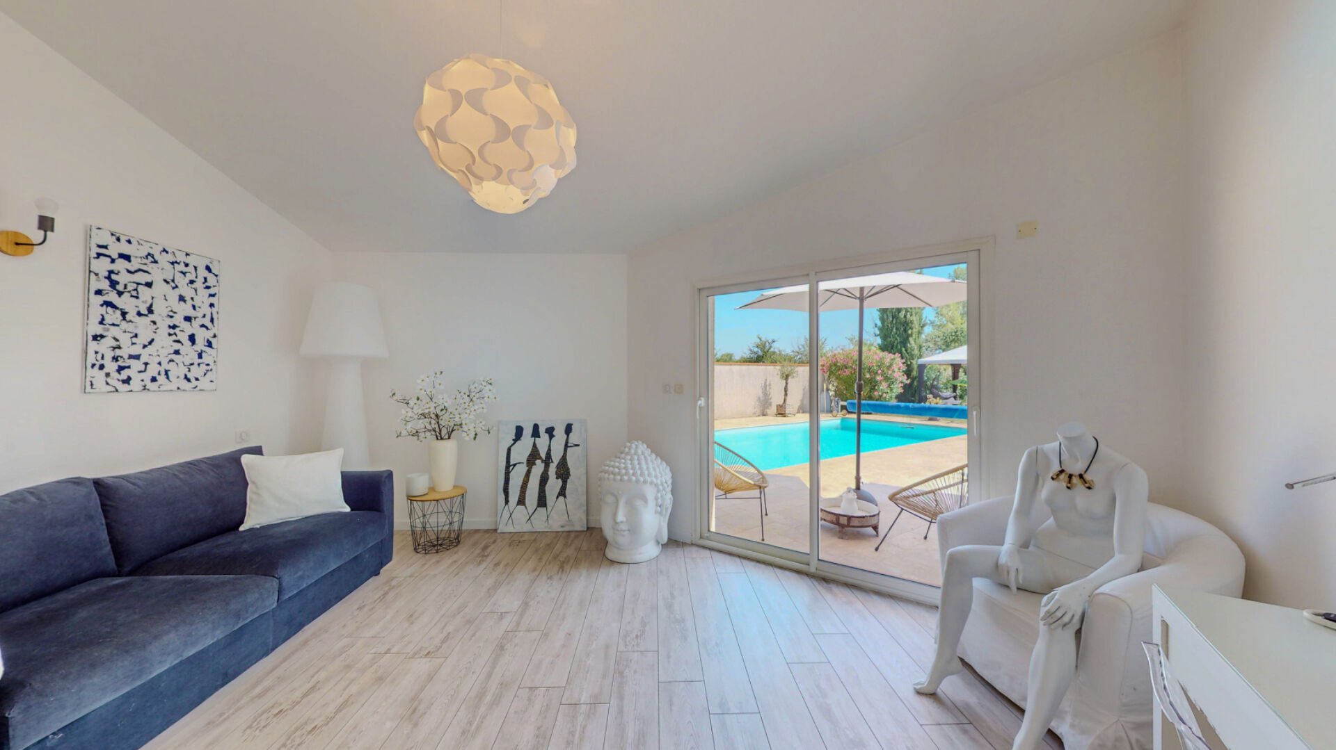 Côté confort, tout a été pensé pour un quotidien moderne et économe : climatisation réversible, panneaux solaires (sans contrat de revente), et borne de recharge pour véhicule électrique. Grâce à son exposition idéale, la villa bénéficie d'une luminosité naturelle du matin au soir.