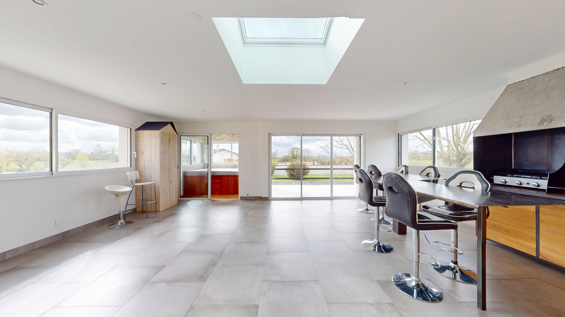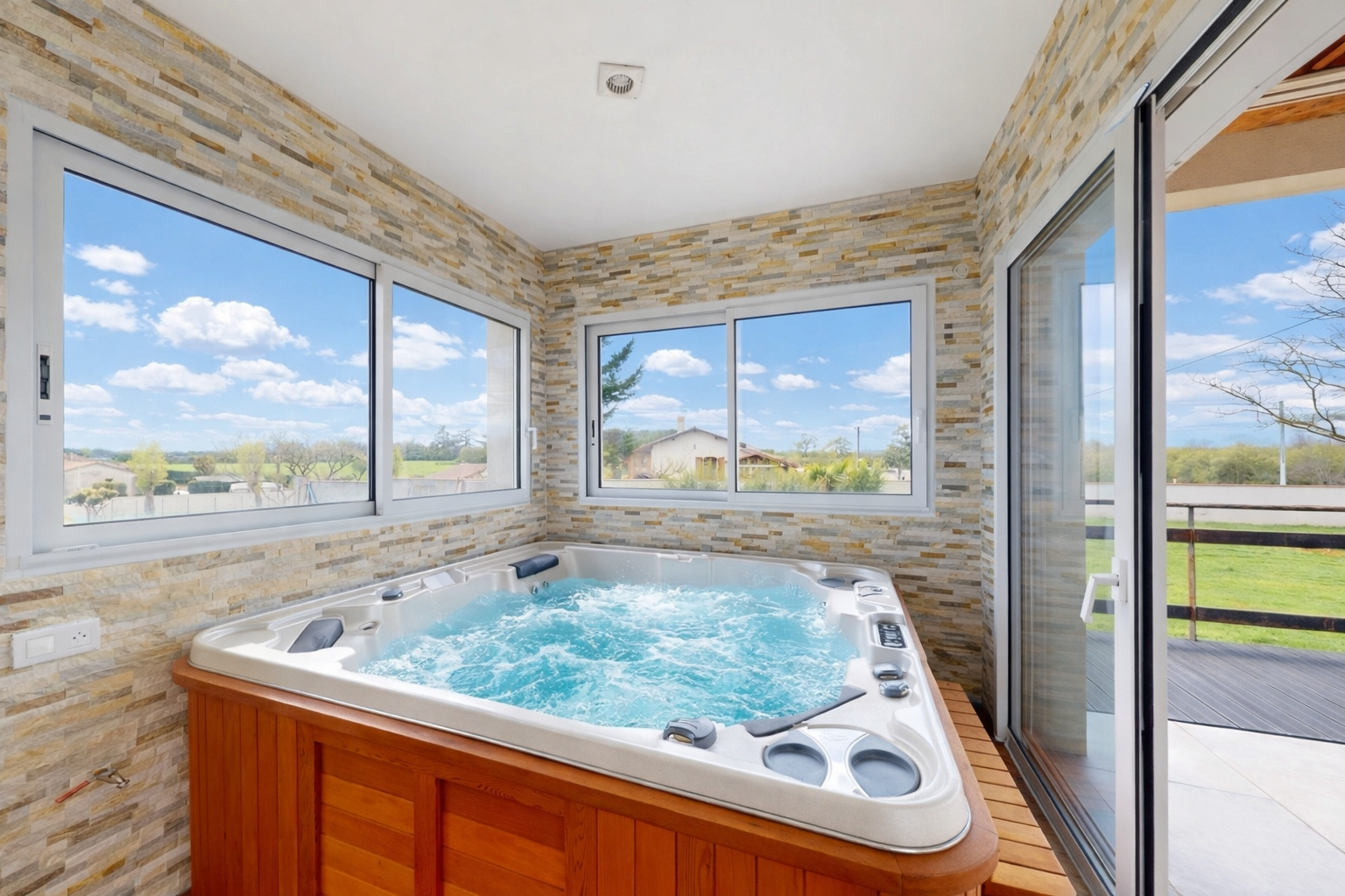 Un espace détente avec jacuzzi vient compléter l'ensemble et invite à profiter de moments de relaxation à domicile, en toute tranquillité.