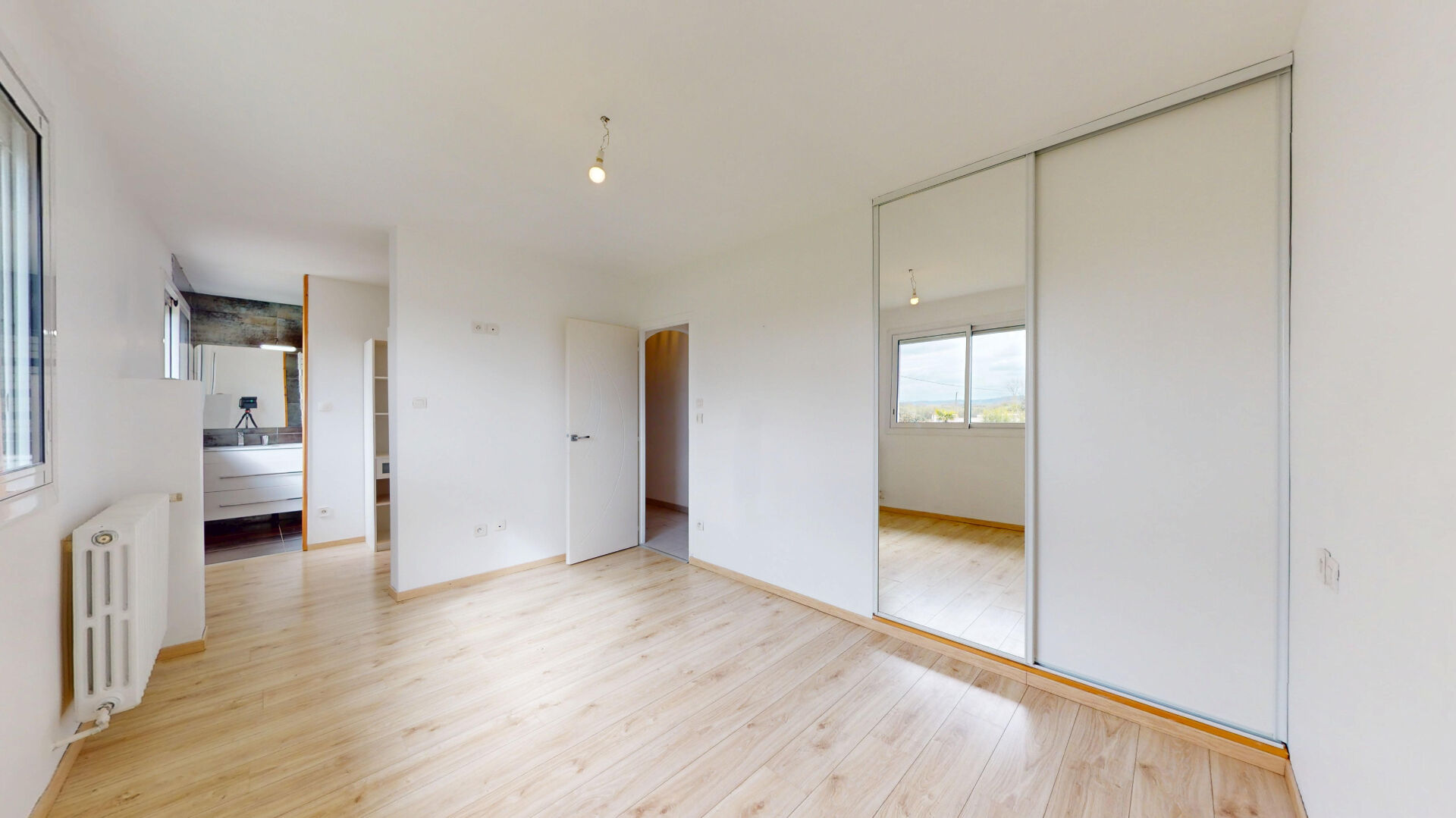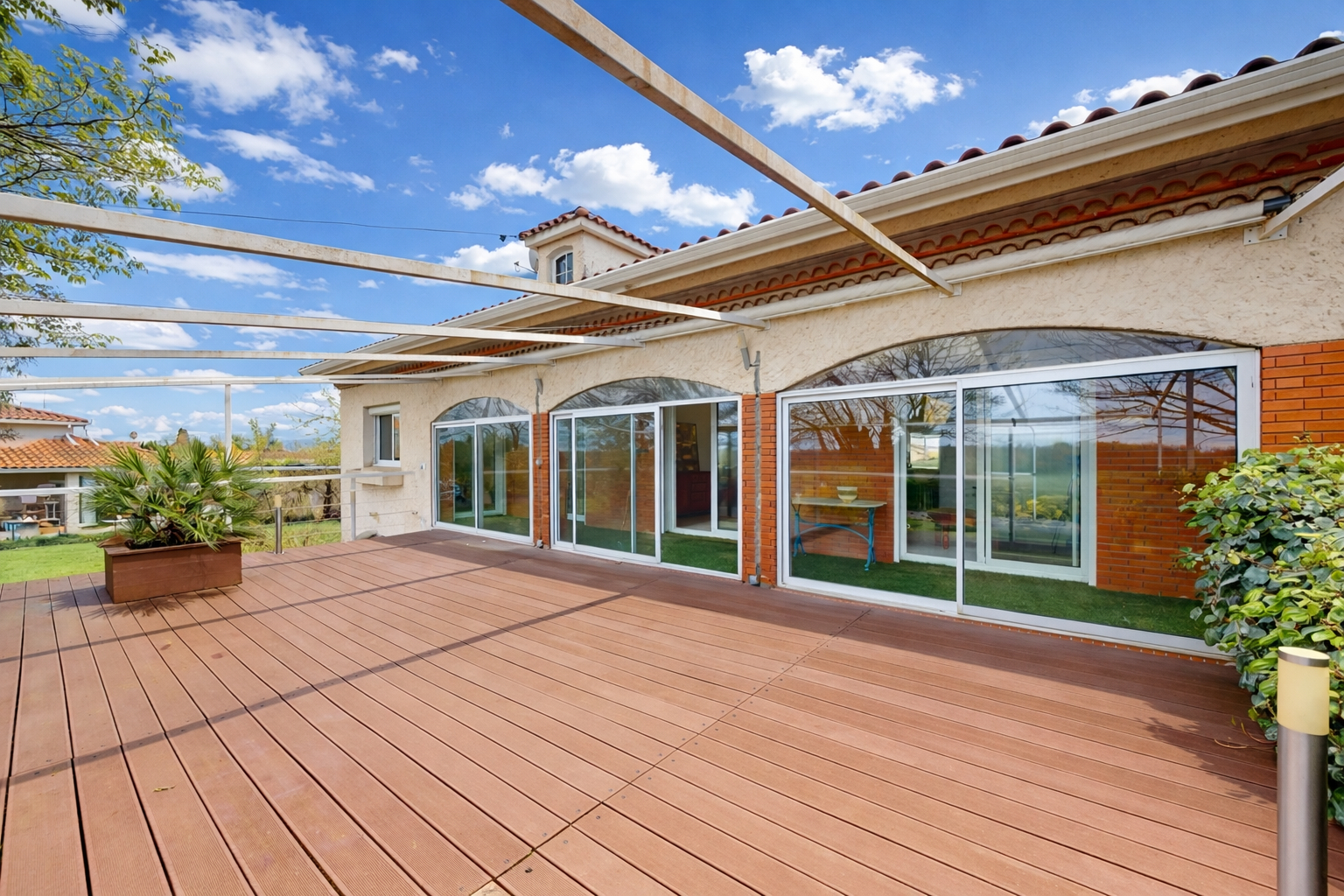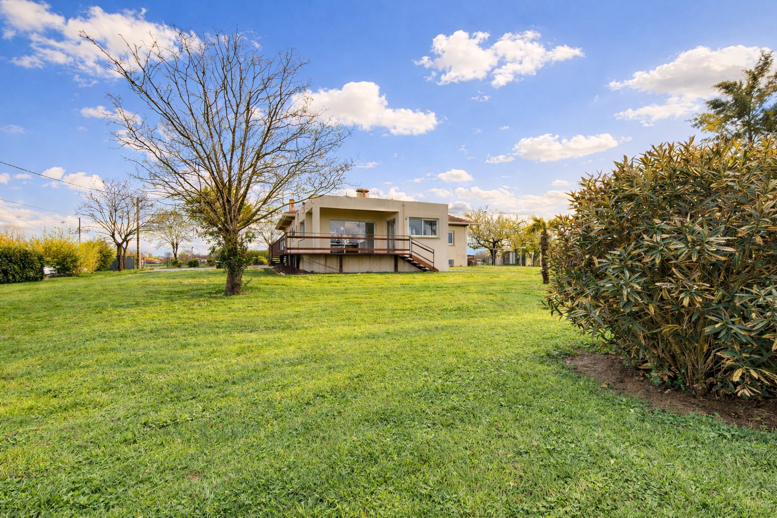 À l'extérieur, le garnd terrain clos et arboré prolonge naturellement la qualité de vie offerte par la maison, sans vis-à-vis, dans un environnement paisible. Une belle terrasse d'environ 40 m² permet de profiter pleinement des beaux jours, tandis que la propriété bénéficie d'un double accès grâce à deux portails, offrant praticité et confort au quotidien.